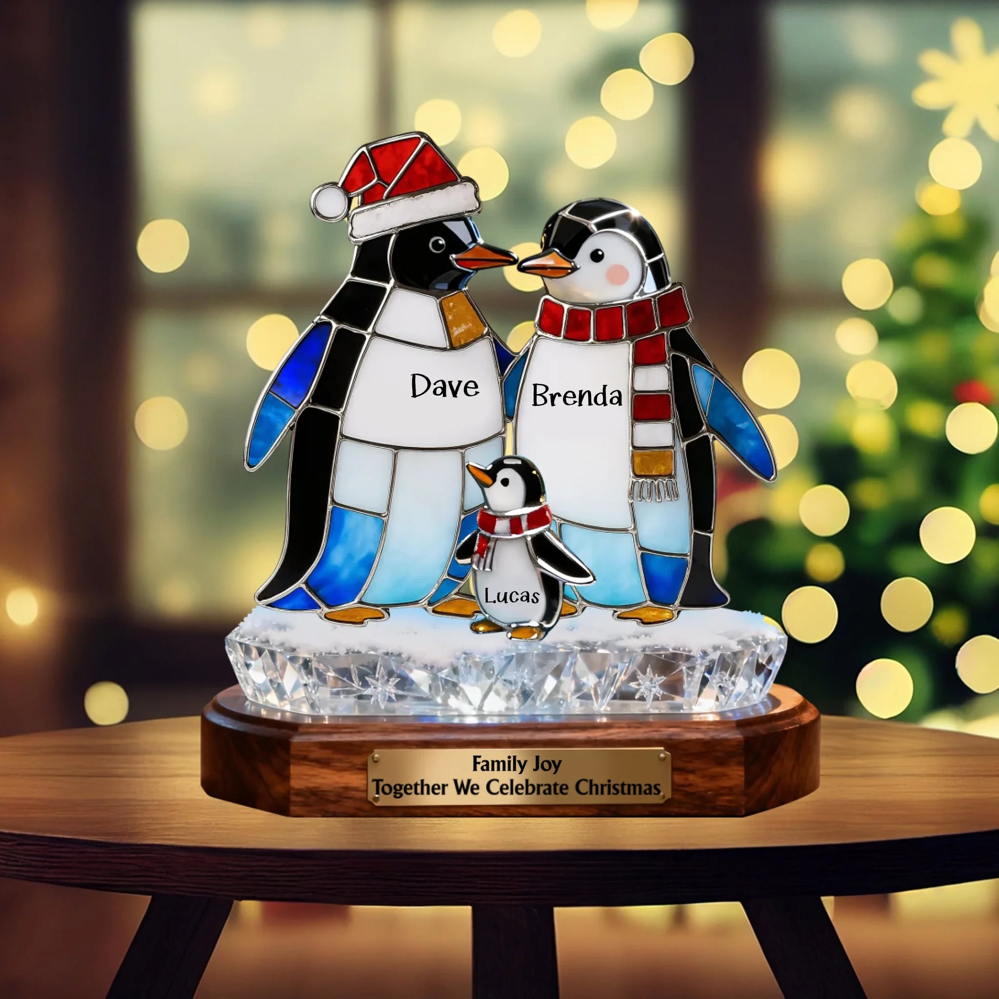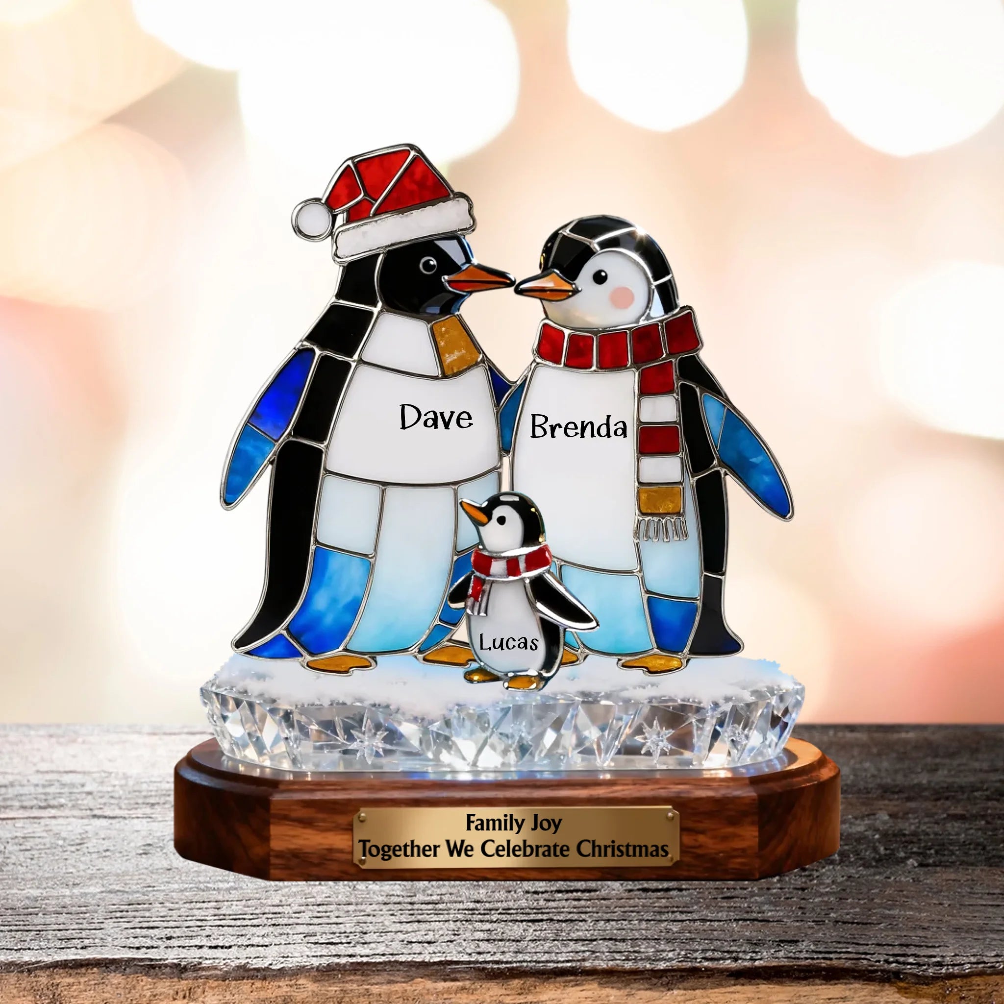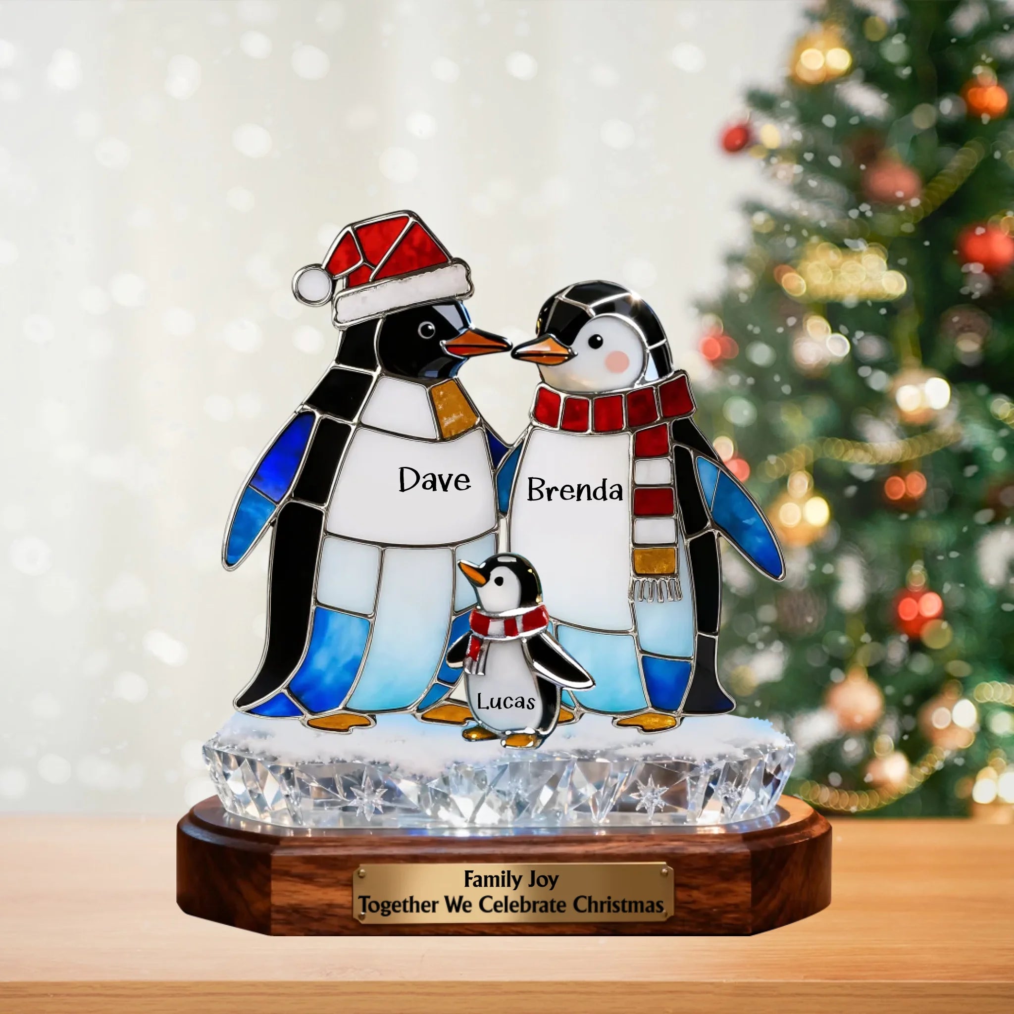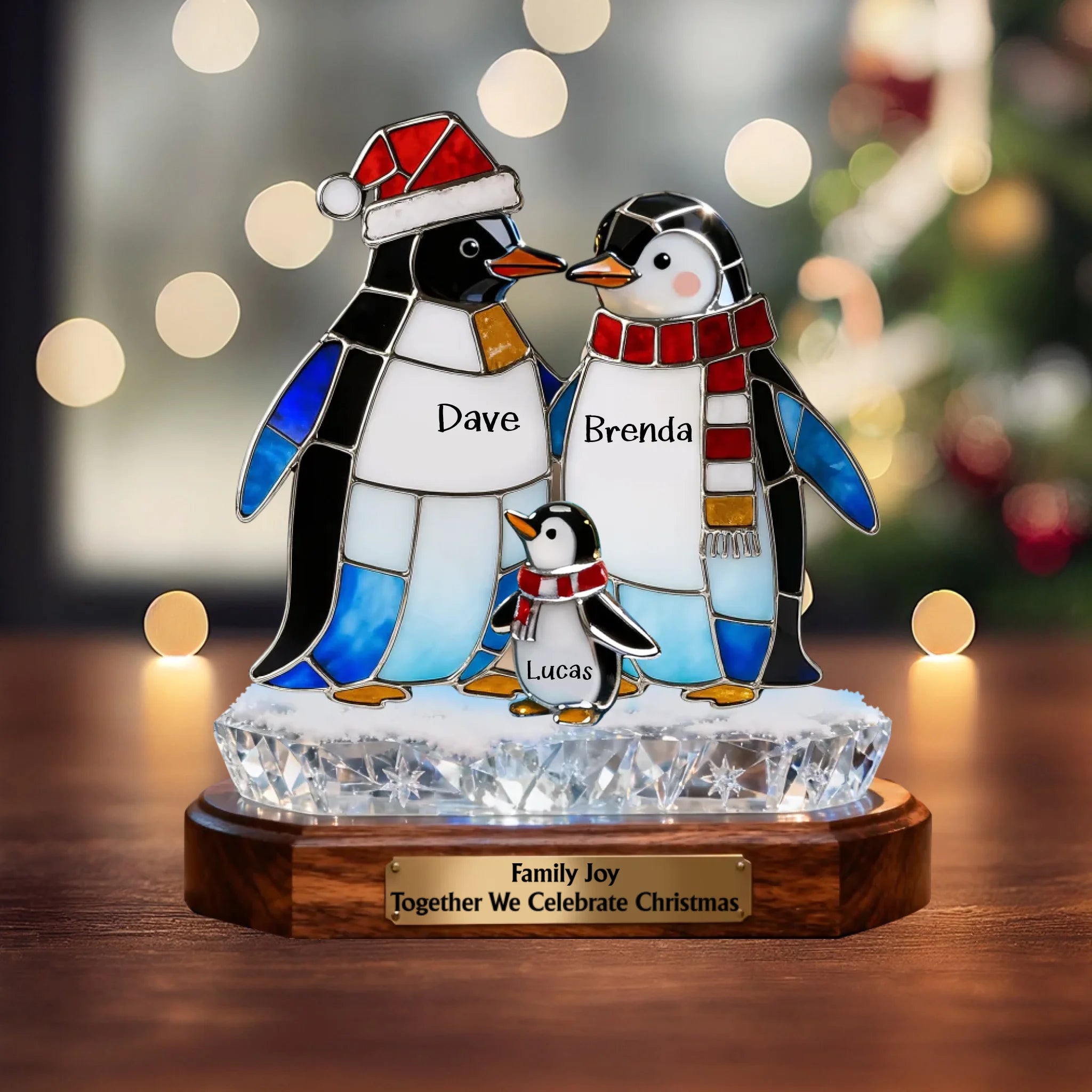 Custom Penguin Family Acrylic Plaque – Personalized Holographic Acrylic Block Gift for Christmas & Family Décor