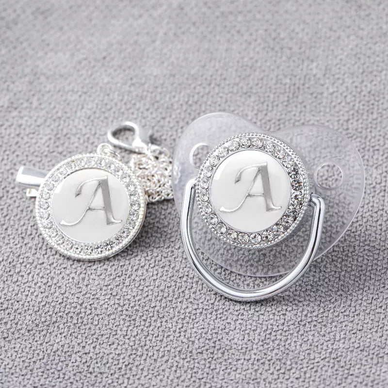 🌟 Make a statement with our Newborn Personalized Pacifier Clips - Silver Bling Luxury Pacifiers Holder. Elevate your baby's experience with style and safety! 🌟
