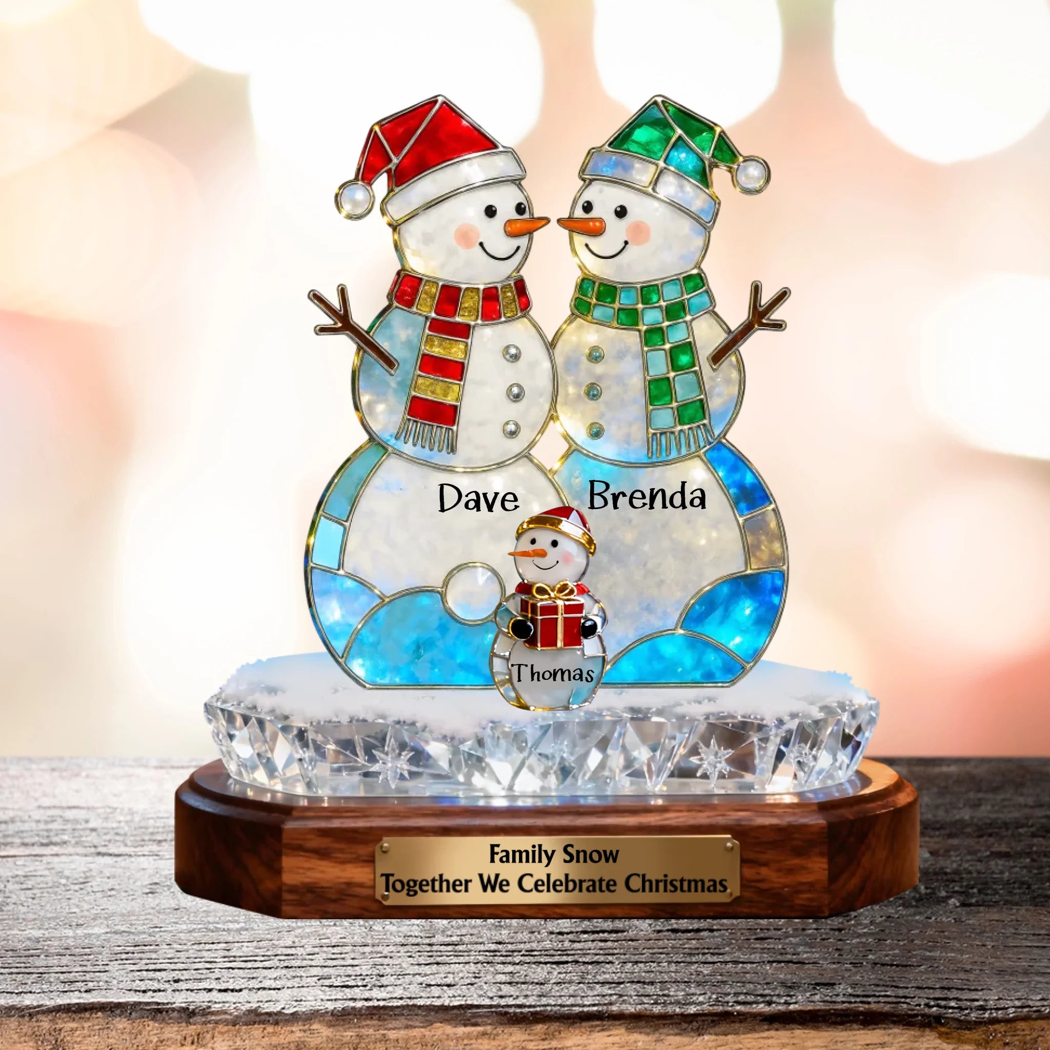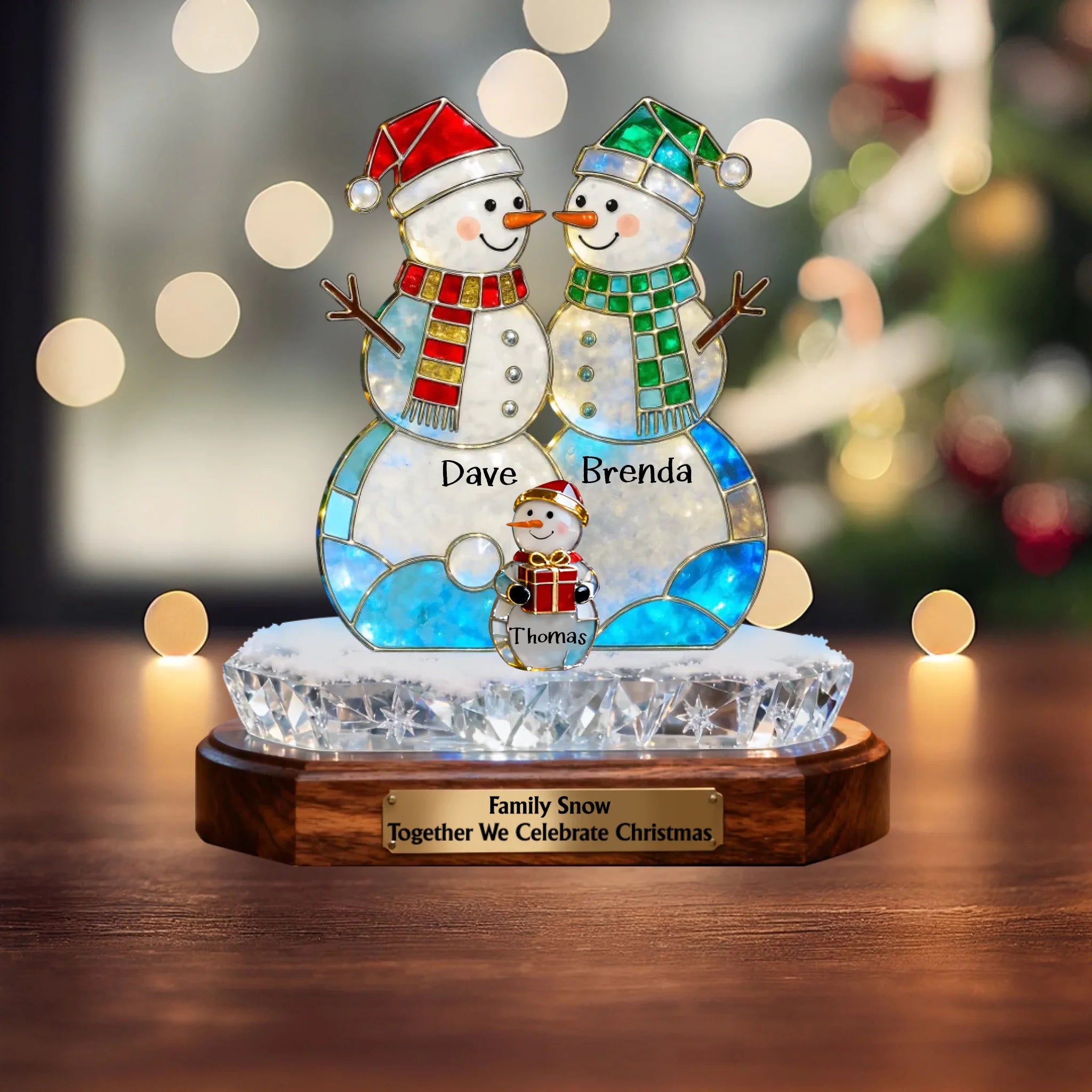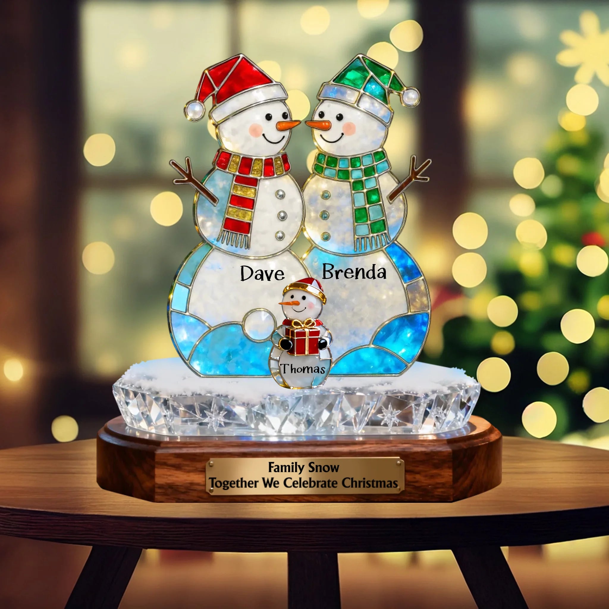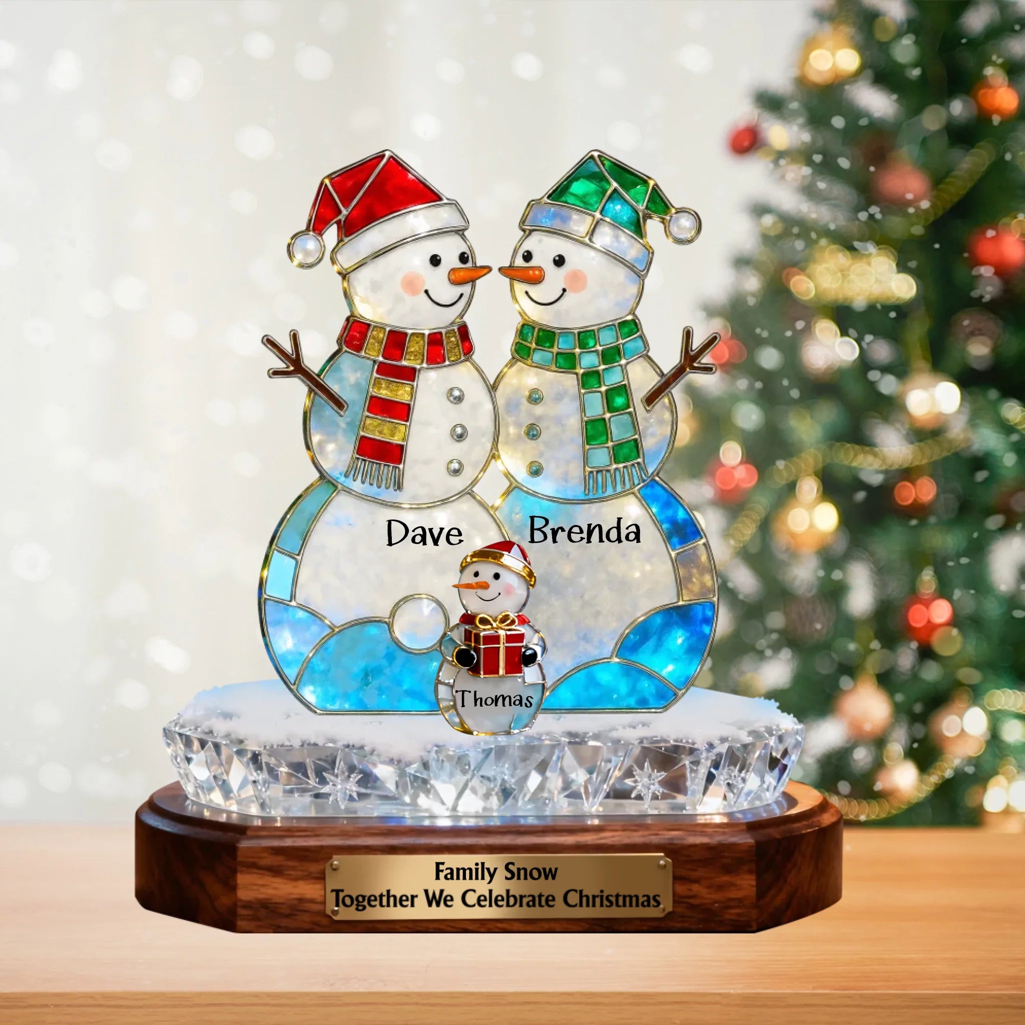Custom Snowman Family Acrylic Plaque – Personalized Holographic Christmas Decoration Gift