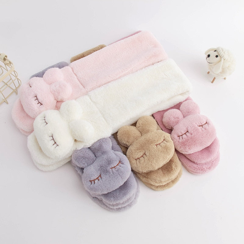 - The scarf is designed at the top with a cute bunny image emerging, looking very cute.