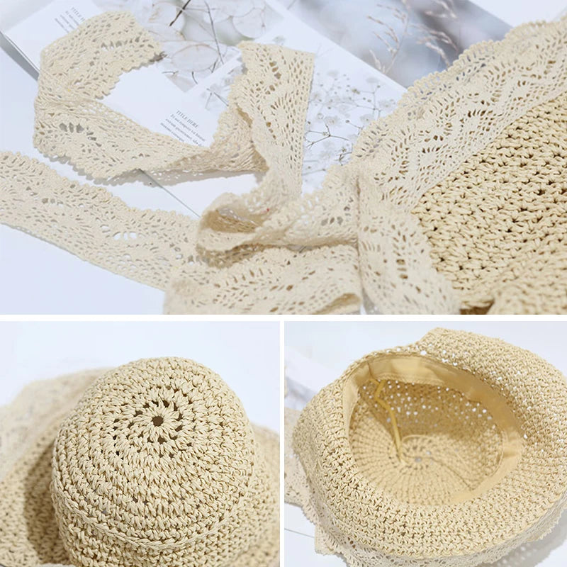 Cute Lace Straw Sun Hat: Wide Brim Panama Cap