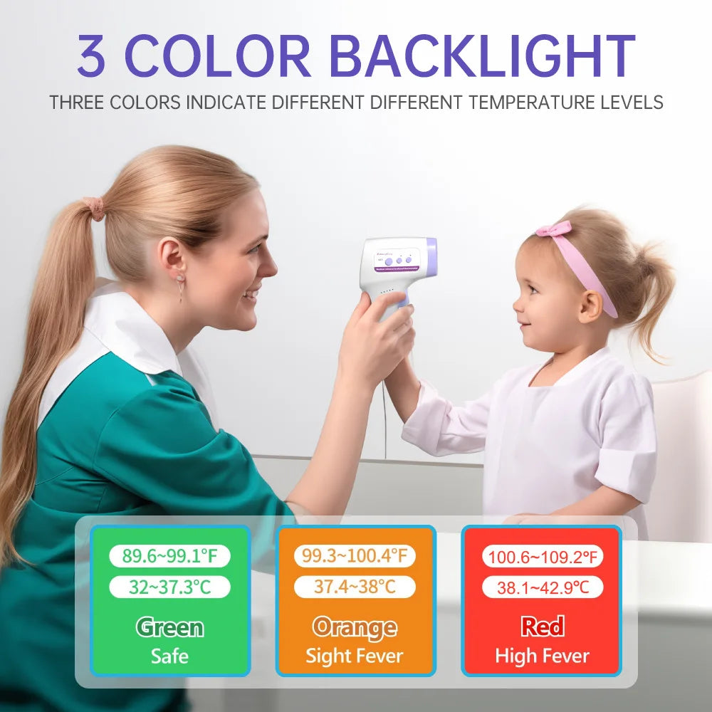 ✅ Clear LCD Display – Easy-to-read backlit screen with color indicators for fever alerts.