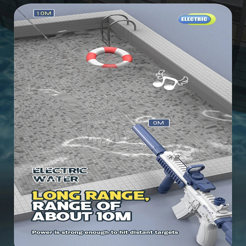 Pistolet à eau électrique M416 – 10 m de portée, alimenté par batterie, pour enfants, jouet de plage d'été, trempage automatique pour garçons et filles (à partir de 3 ans)