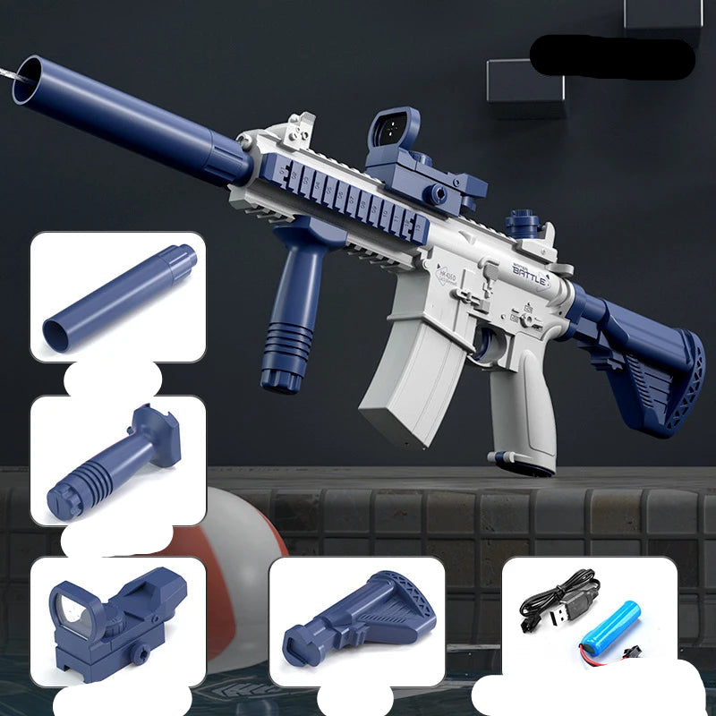Laissez vos enfants faire passer le plaisir de l'été au niveau supérieur avec ce pistolet à eau électrique M416, conçu pour des batailles palpitantes dans le jardin, à la plage ou à la piscine. Avec un jet longue portée de 10 mètres, un tir automatique et une batterie rechargeable, c'est le jouet idéal pour jouer activement en extérieur.