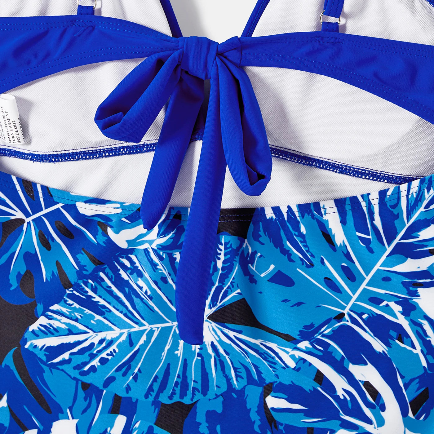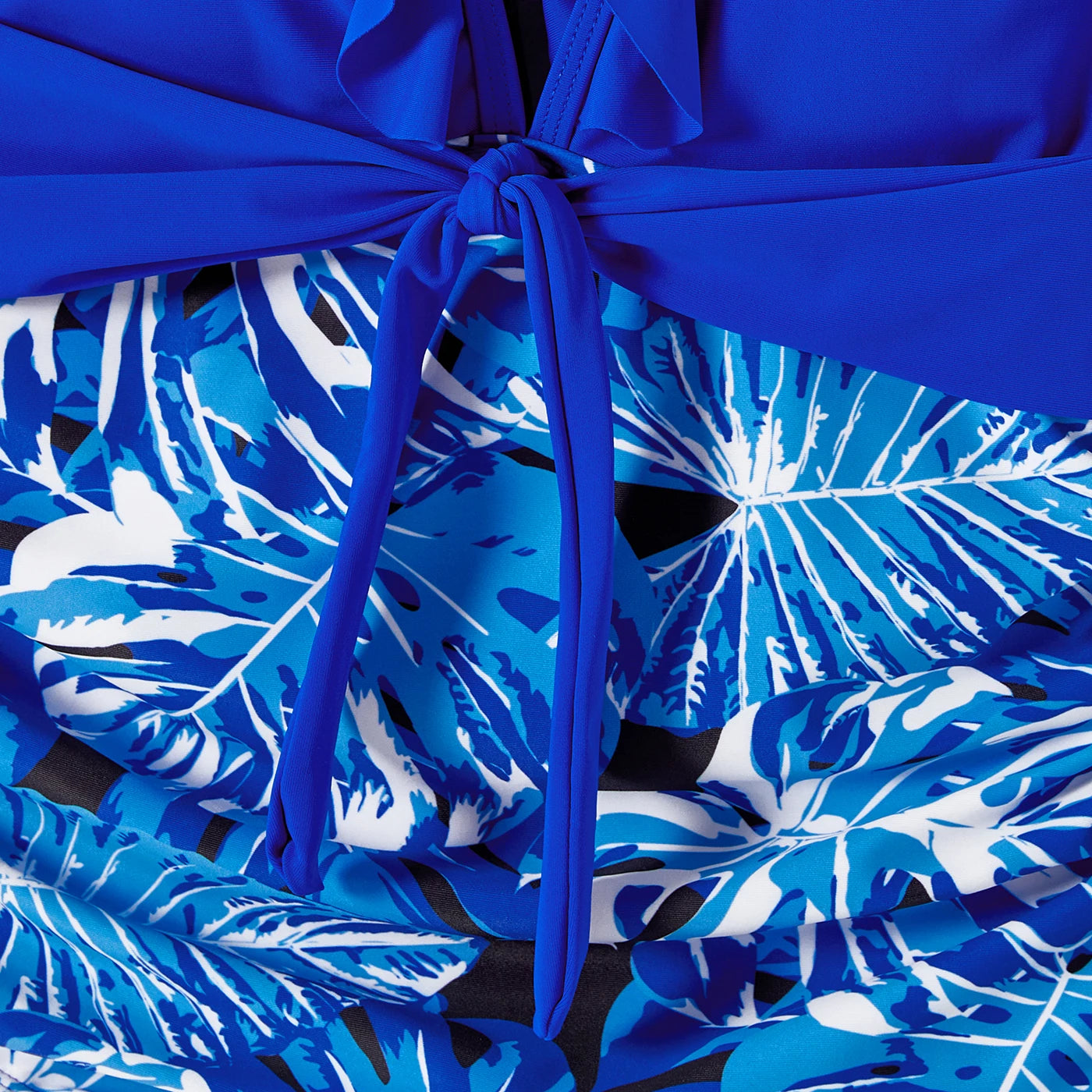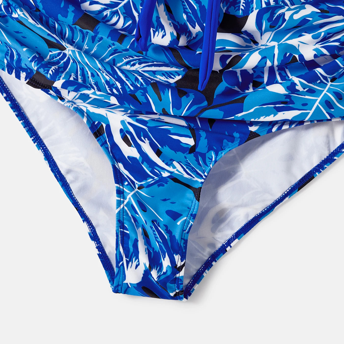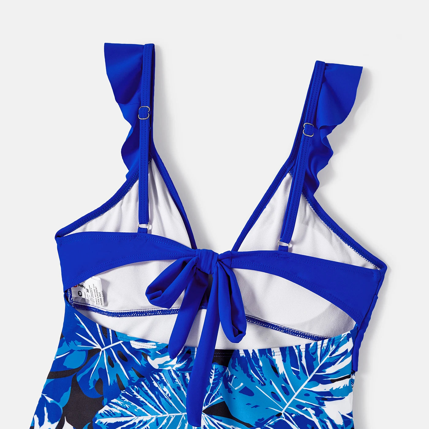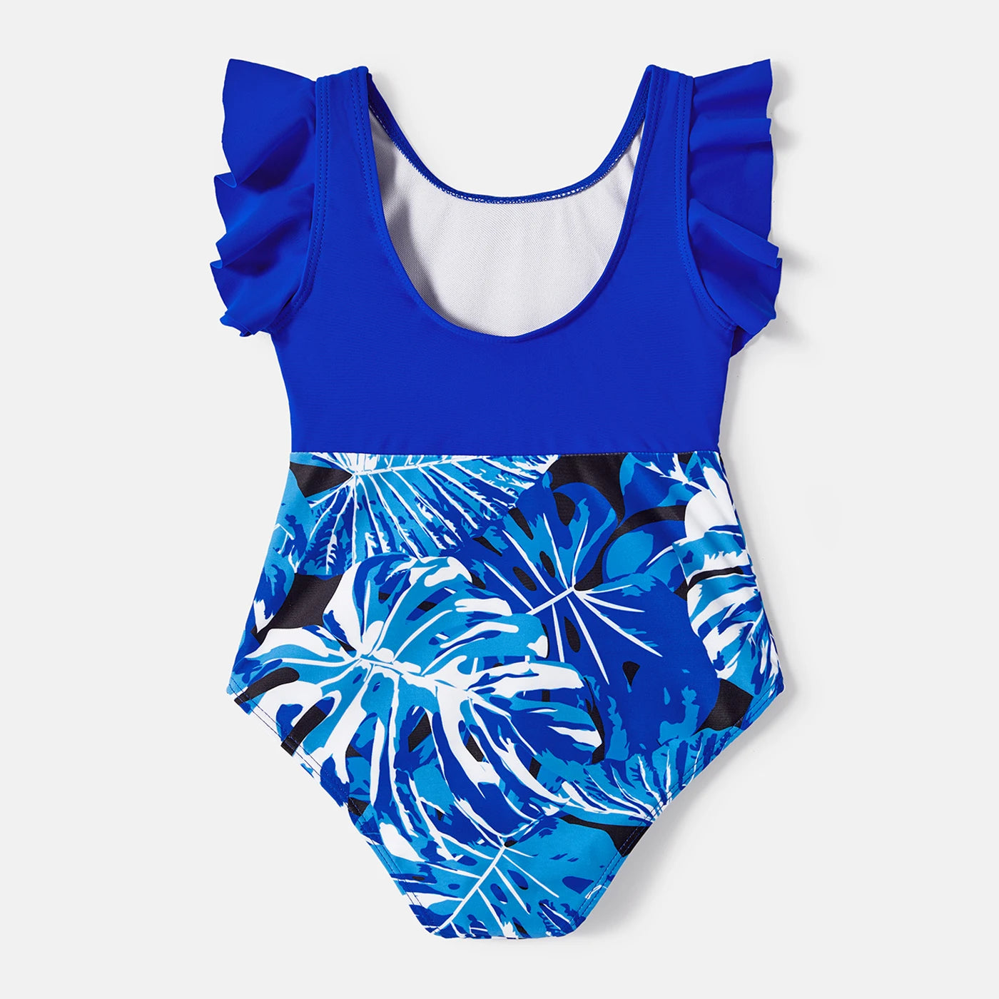 Product Introduction: Unveil a new level of family fashion with our exquisite Family Matching Plant Print Swim Trunks and Blue Ruffle Trim Spliced One-piece Swimsuit. This stylish swimwear set promises to make your family stand out on any sunny day.
