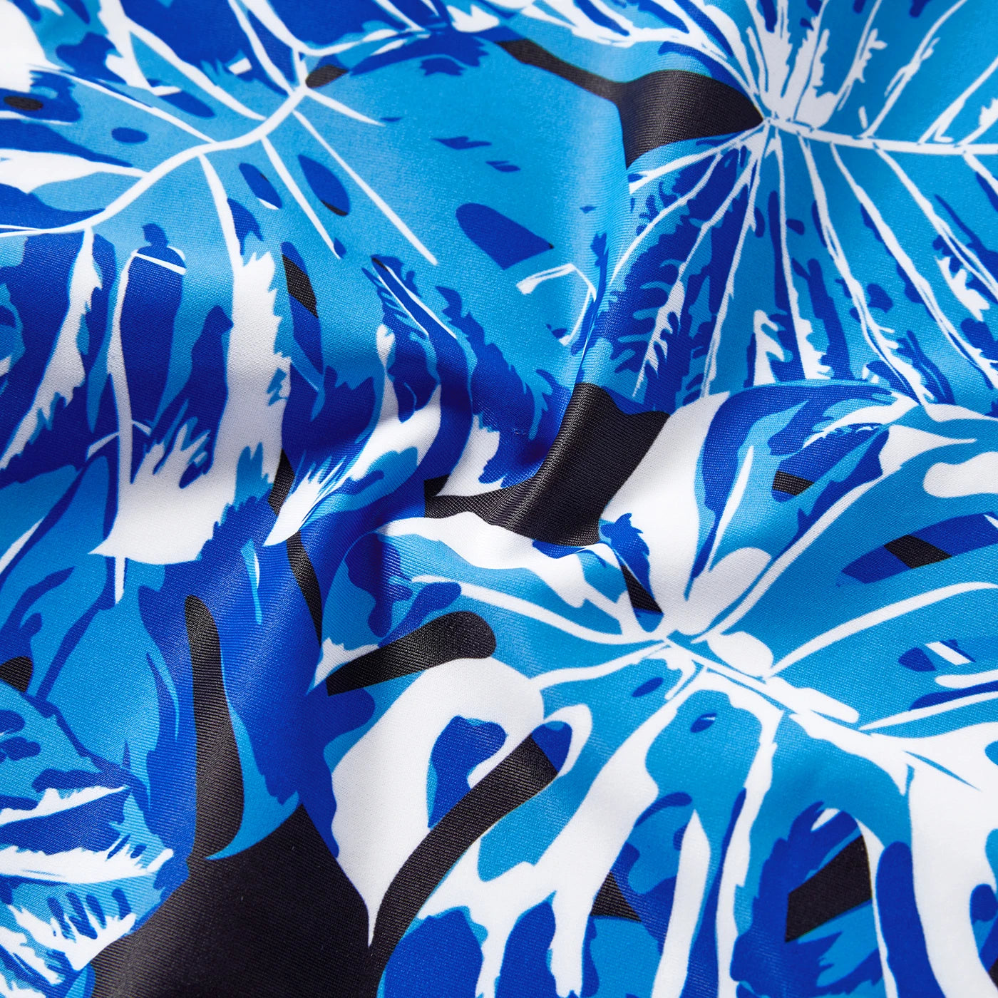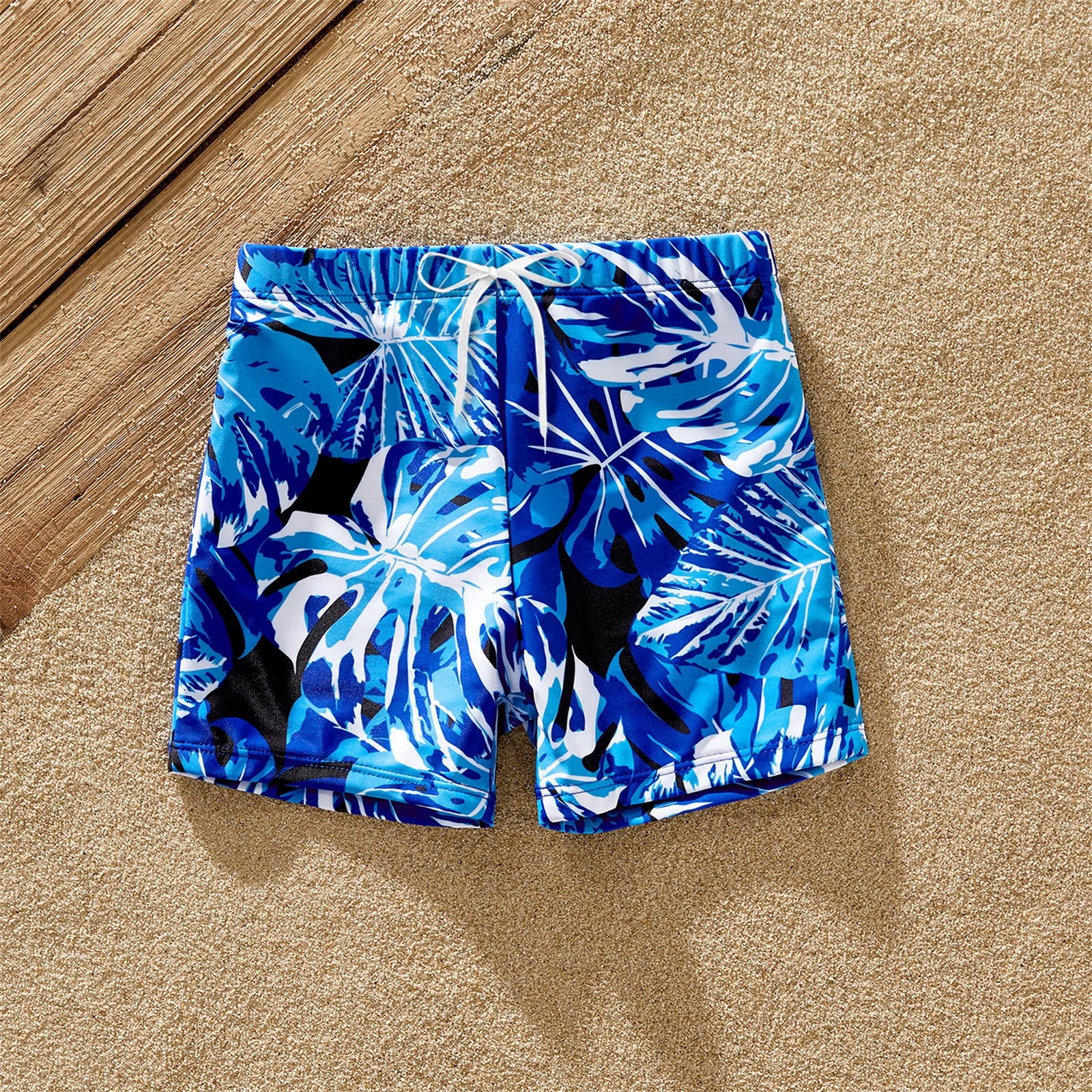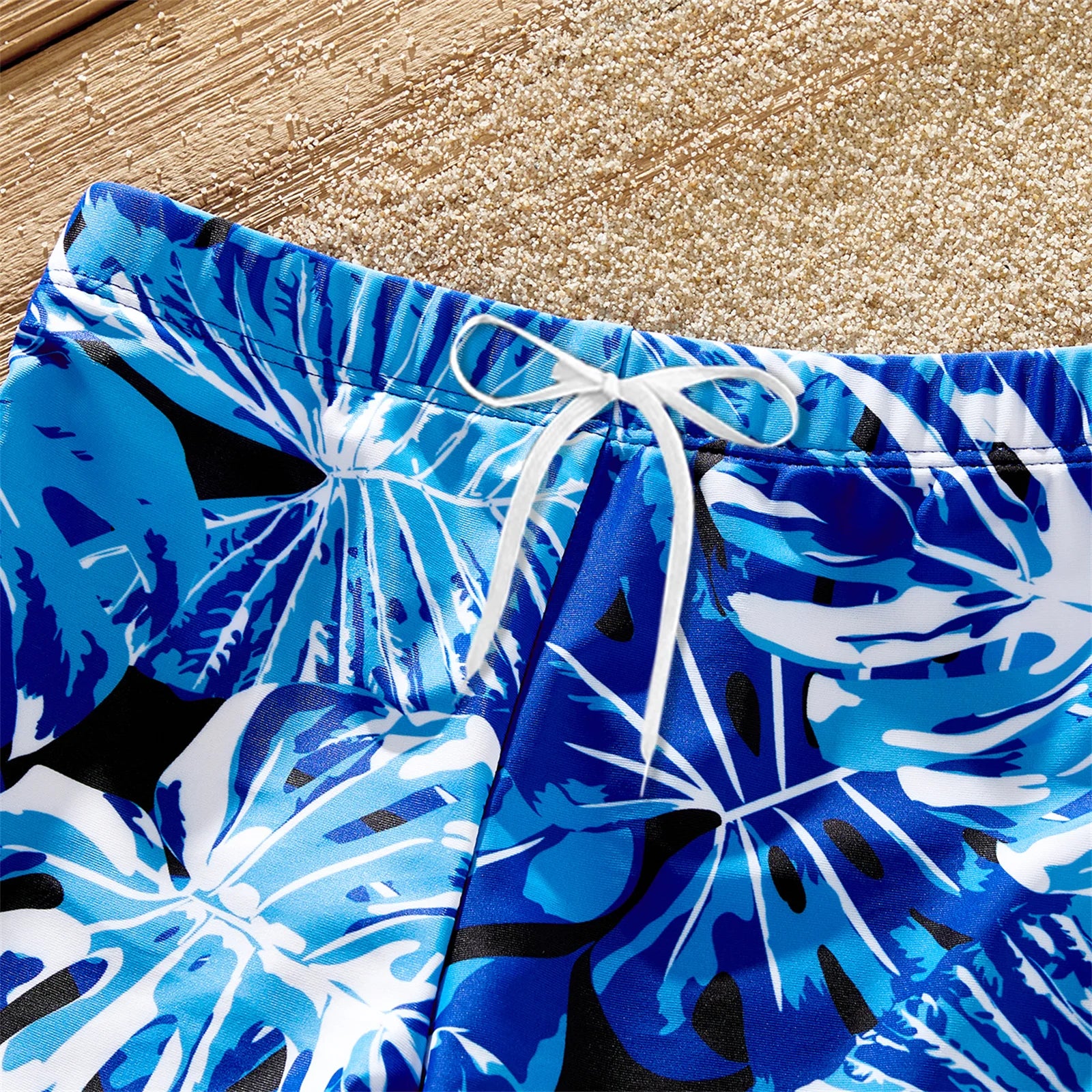 Suitable for Every Water Adventure: Ideal for the beach, pool, or any water activity, this swim trunks set is the perfect choice for family vacations and holidays. The plant print and blue ruffle trim spliced design add a delightful touch of personality.
