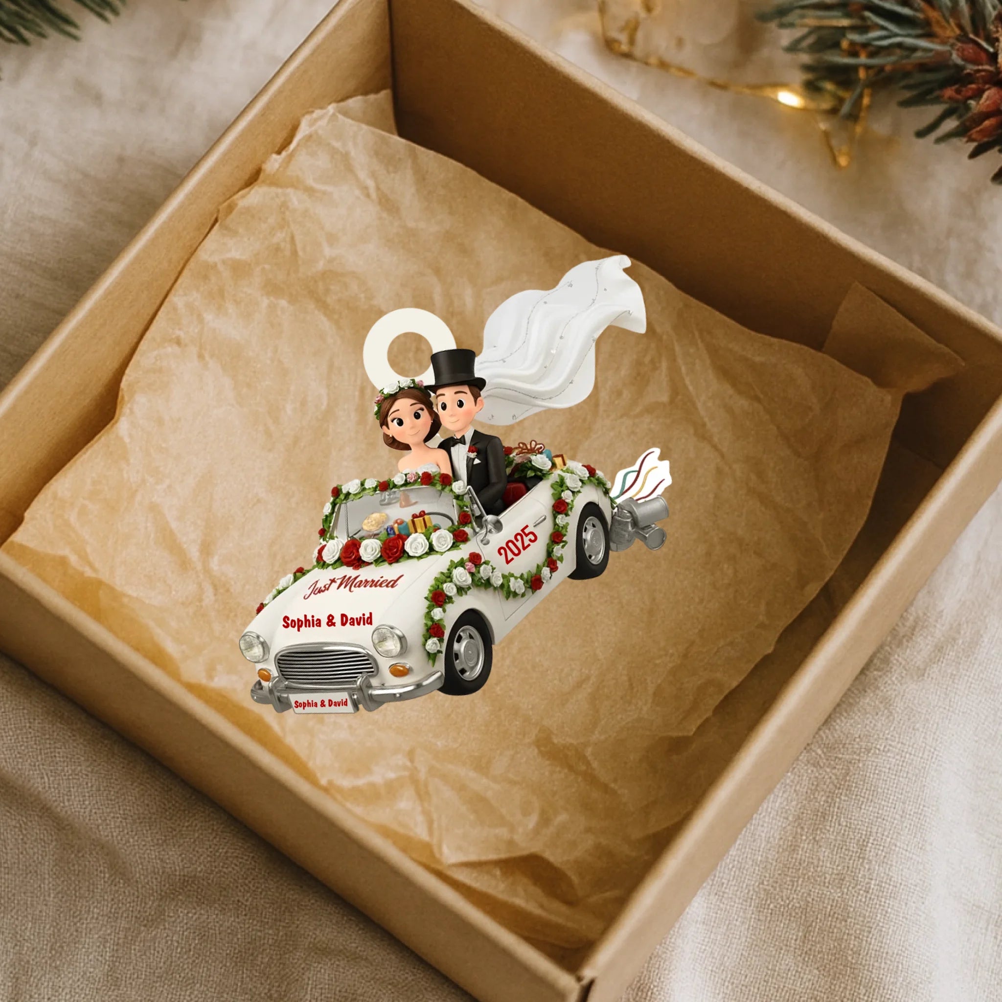 Beautifully crafted and rich in detail, this ornament brings warmth, romance, and personality to your holiday décor. It makes an unforgettable gift for couples who love meaningful, custom-made treasures.
