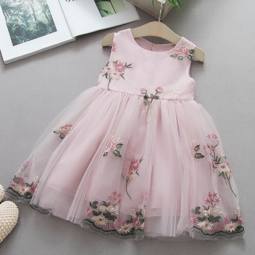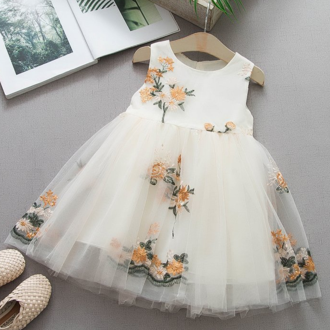 This Floral Embroidered Pattern Sleeveless Princess Casual Dress can be worn in all seasons. The beautiful floral embroidery design gives that elegant fashion look. The material is soft and very comfortable for your baby.