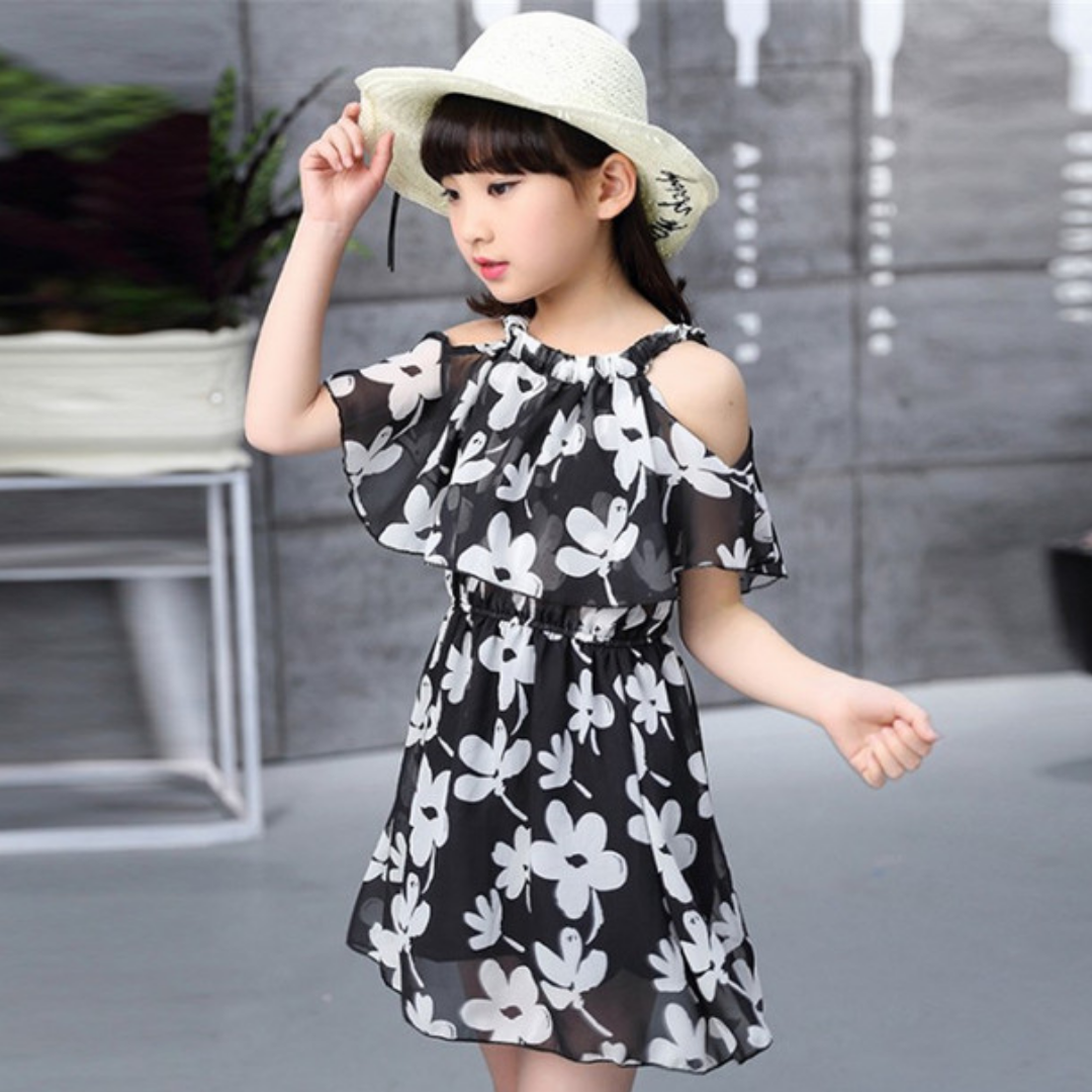 This Floral Graffiti Print Cold Shoulder Girl Summer Dress is a cute dress for summer. Your girl will be the most beautiful girl on the beach when she wears this dress, this is very comfortable to wear all day long.