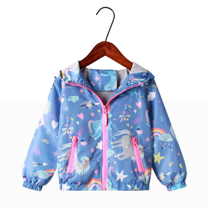 Get your girls ready for the weather in this Floral Graffiti Windbreaker Hoodie Jacket. The material is a smooth, light, and very water-resistant fabric to keep your girls dry and warm on cold and rainy days.