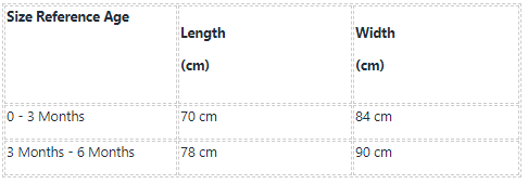 3-6 months Length 70cm (Hat to toe) Width 84cm(Expand both sides)