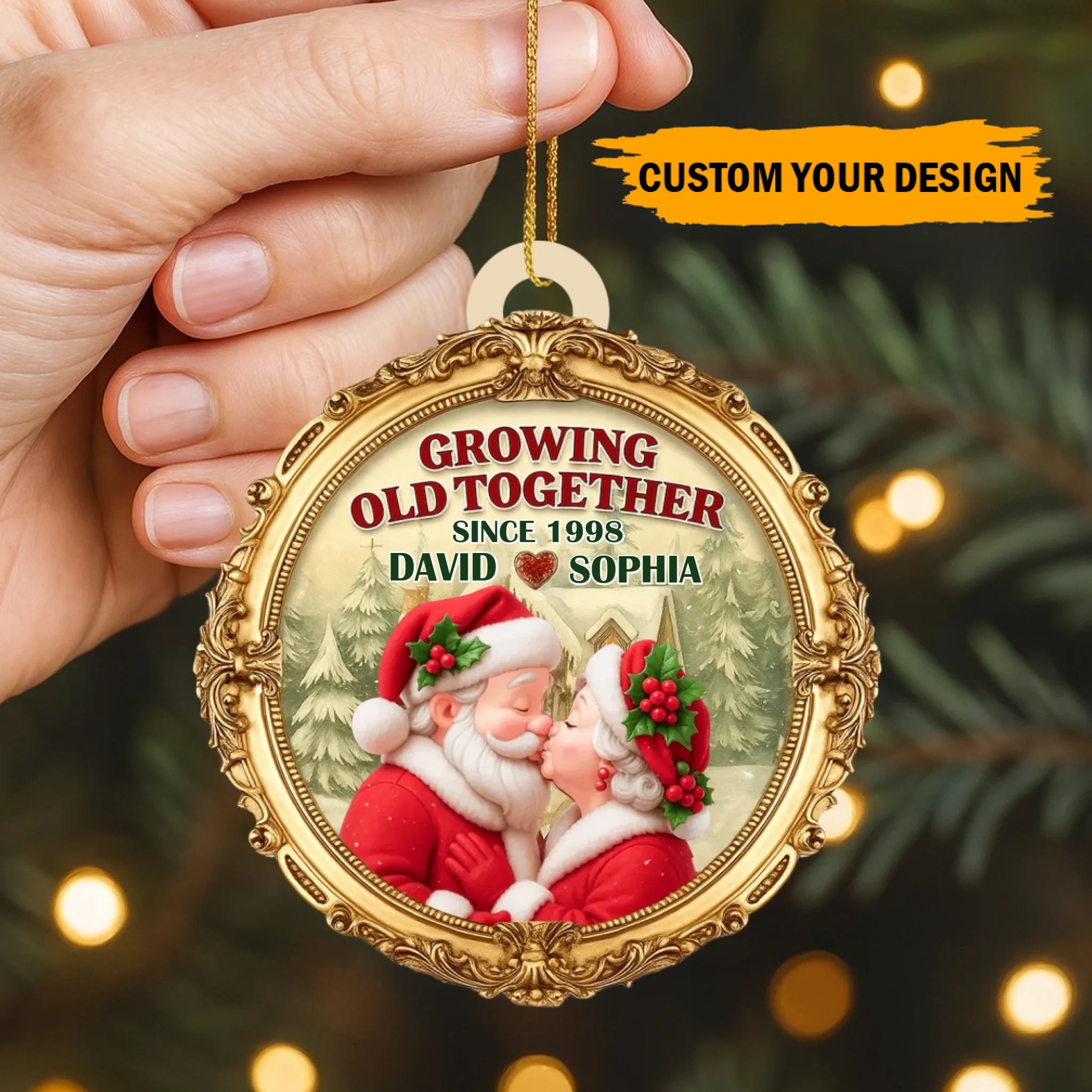 Personalized "Growing Old Together" Christmas Ornament – Custom Couple Names, Year & Skin Tone