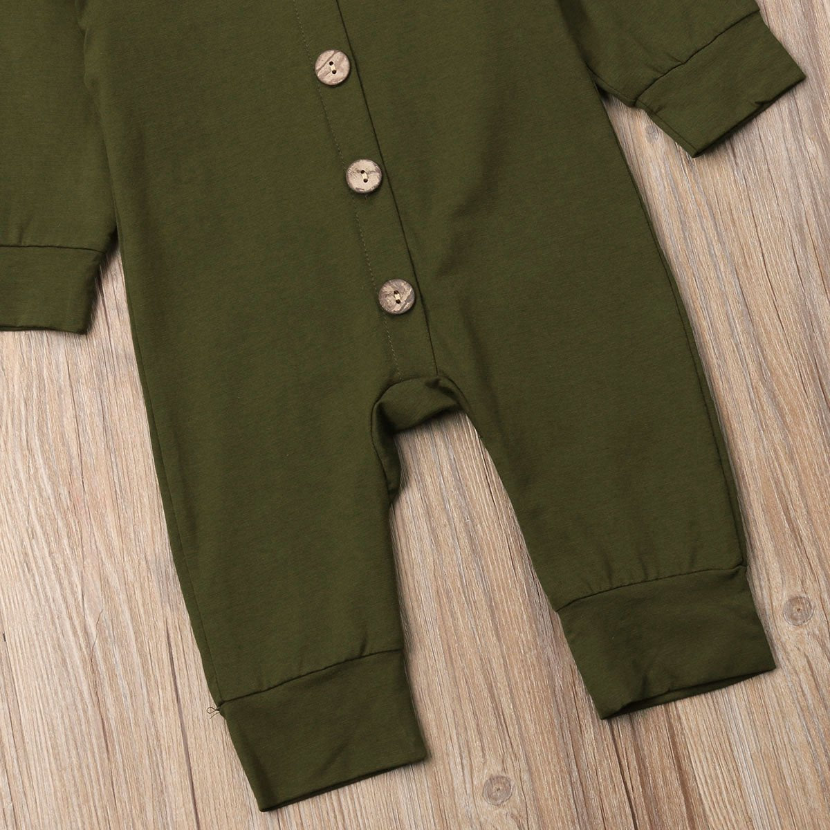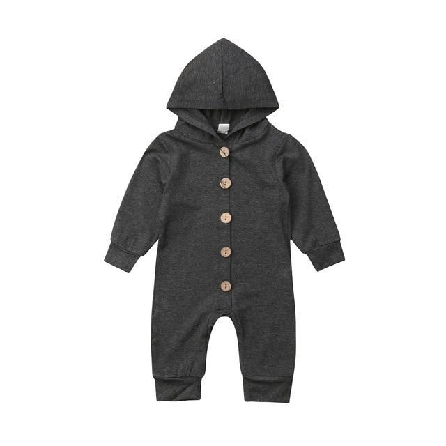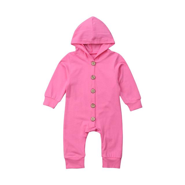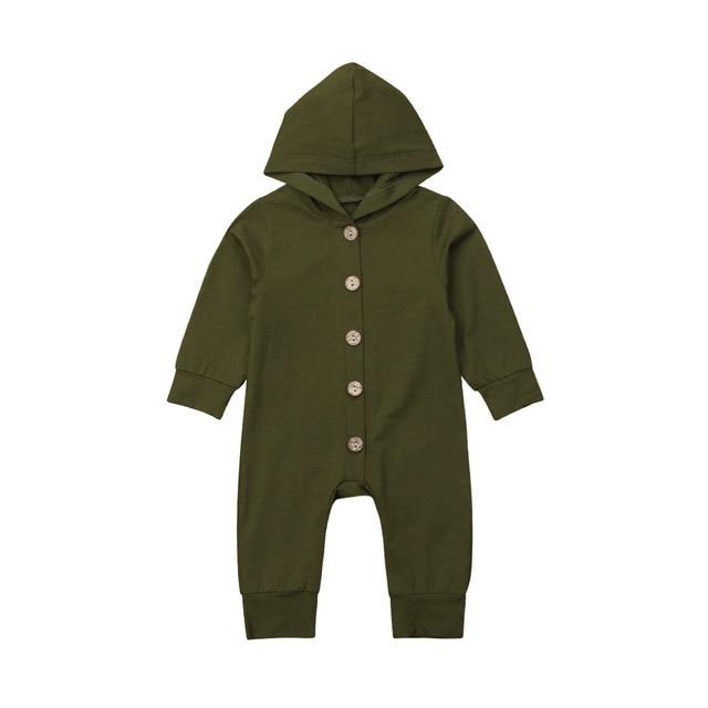 Onesies are an awesome dressing option because busy parents can get their kids ready in minutes rather than worrying about matching a shirt with trousers. Hooded Baby Onesie provides the essential comfort and warmth for a cozy night. The onesie completely encases the baby and gives a sense of safety. The contrasting color buttons appear visibly on the outfit and provide a stylish look. They make the opening and closure convenient for dressing and diaper changes. The elastic band on the cuffs ensures perfect fitting.