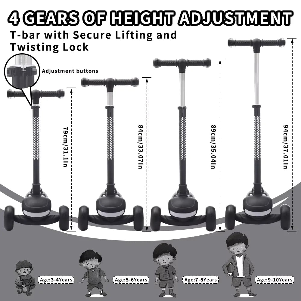 Make every journey an adventure! Click 'Add to Cart' now to secure this 4-level adjustable, light-up 3-wheel scooter and boost your child's balance!