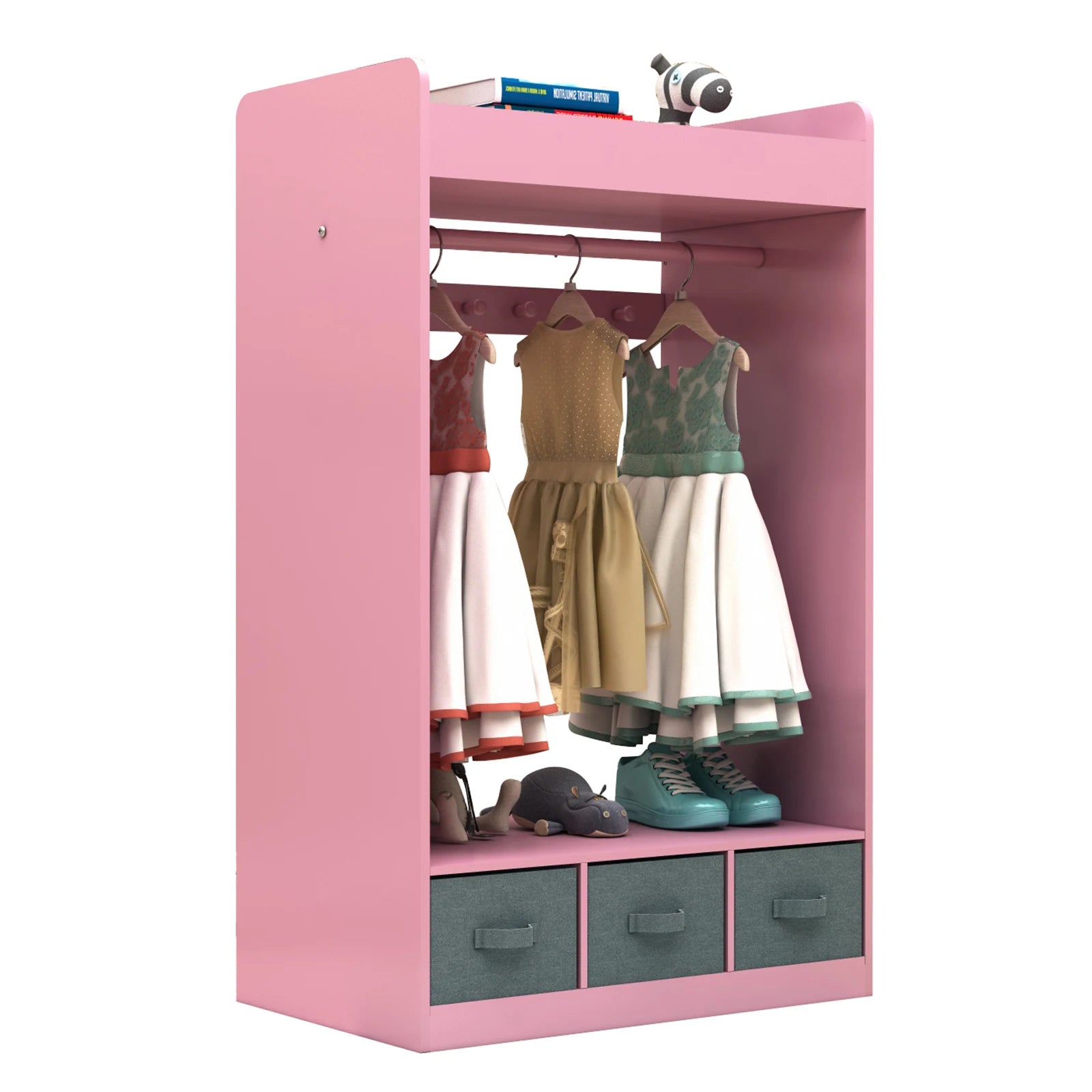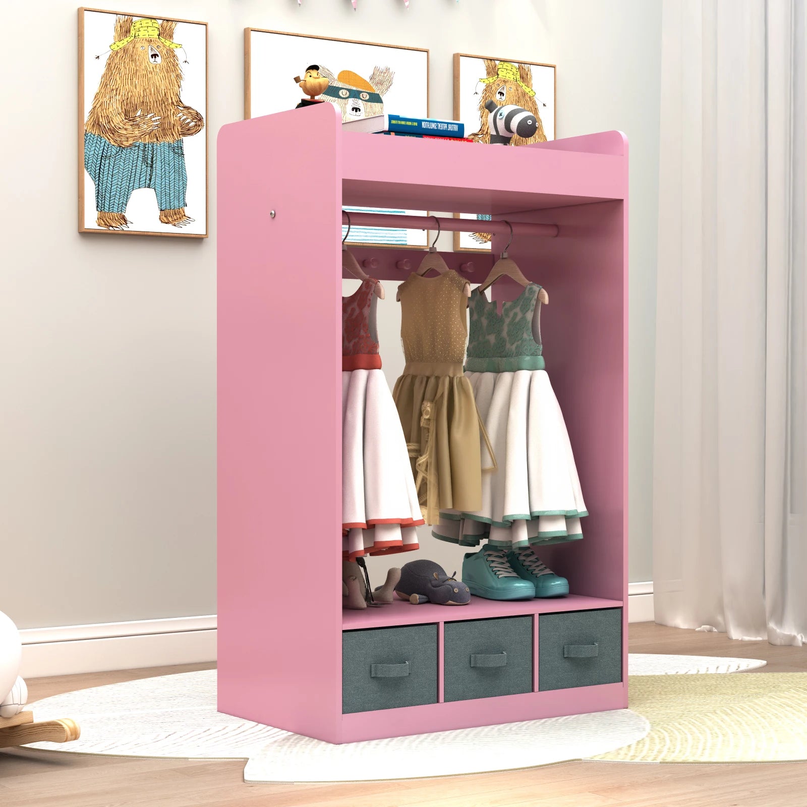 Kids Dress-Up Closet with Mirror – Open Hanging Costume Organizer with Shelves, Hooks & Storage Compartments