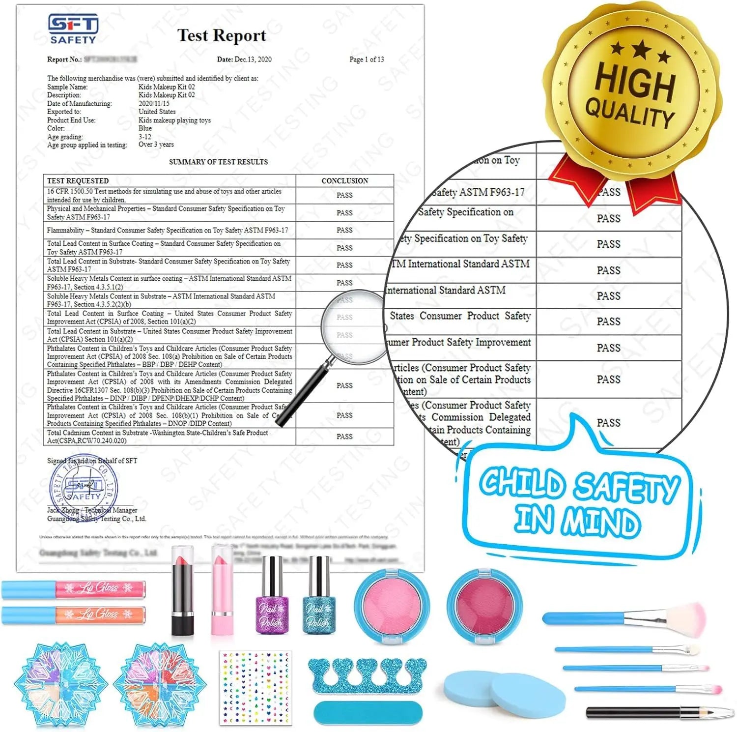 Livré avec une trousse de maquillage compacte et élégante pour garder tout bien rangé et facile à transporter — idéal pour jouer à la maison ou en déplacement. -