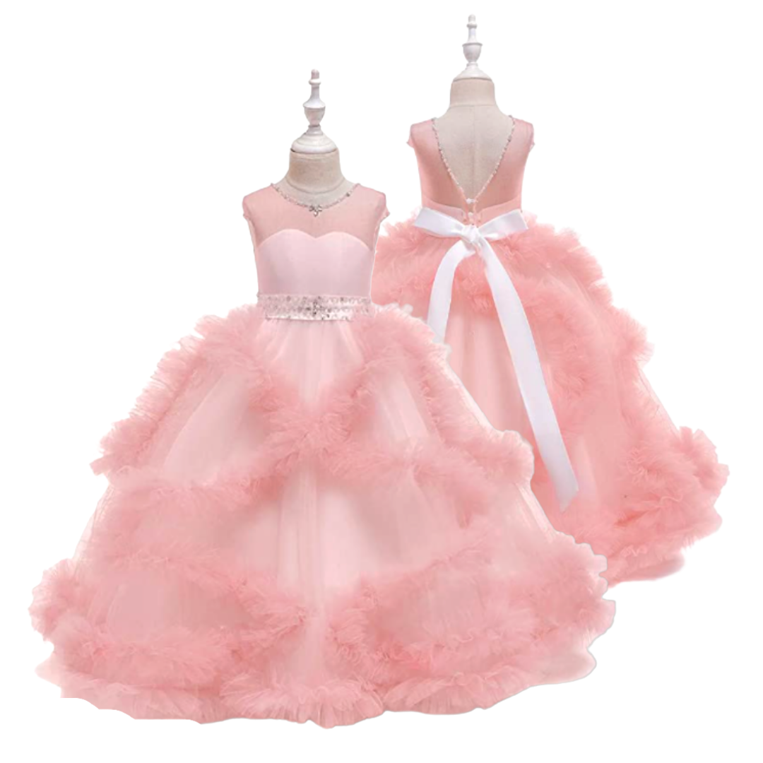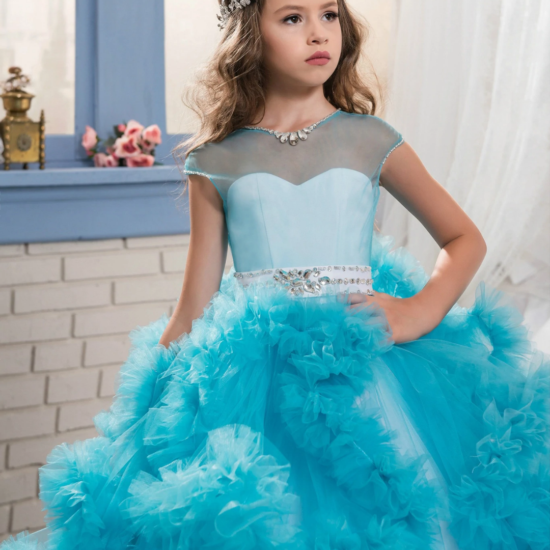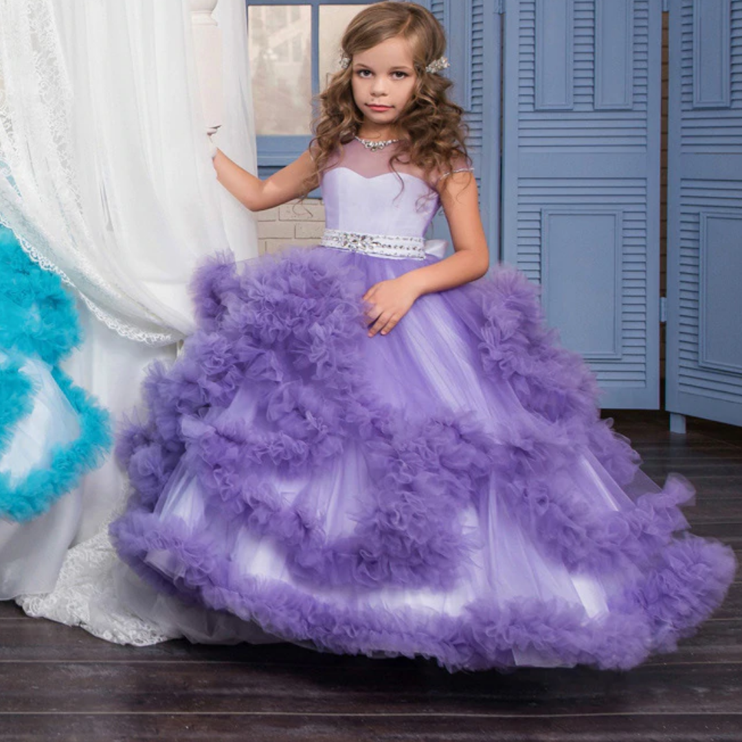 Make your girls look like a princess on their special day with this beautiful dress. This Layered Lace Ruffle and Rhinestone Design Princess Ball Gown is a perfect dress for girls. It can be worn on any occasion or special event.