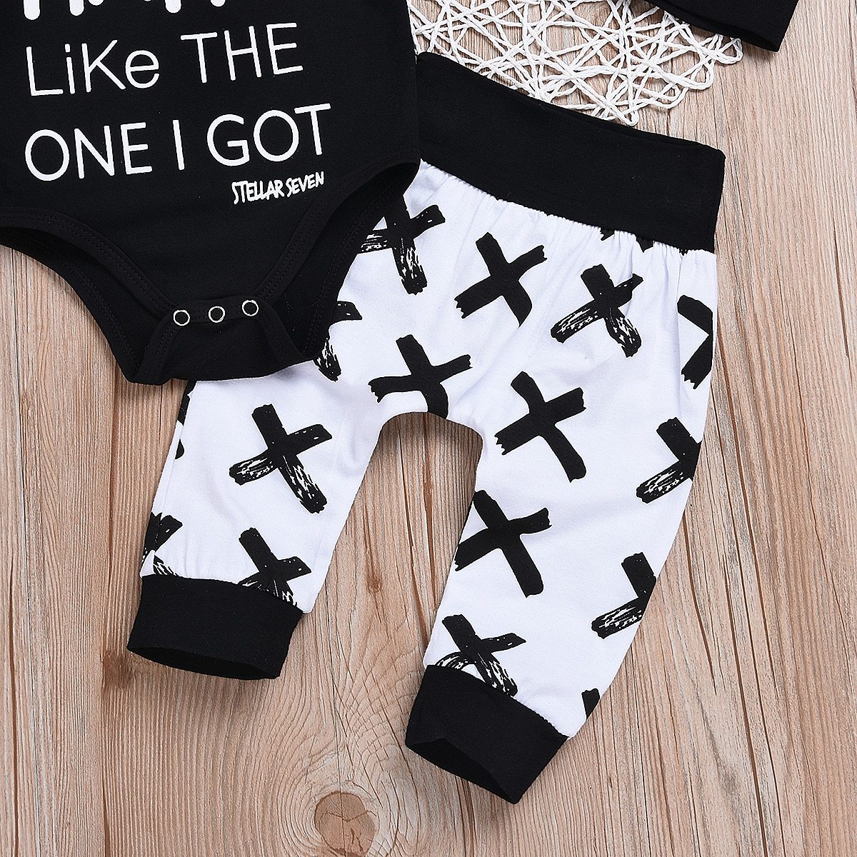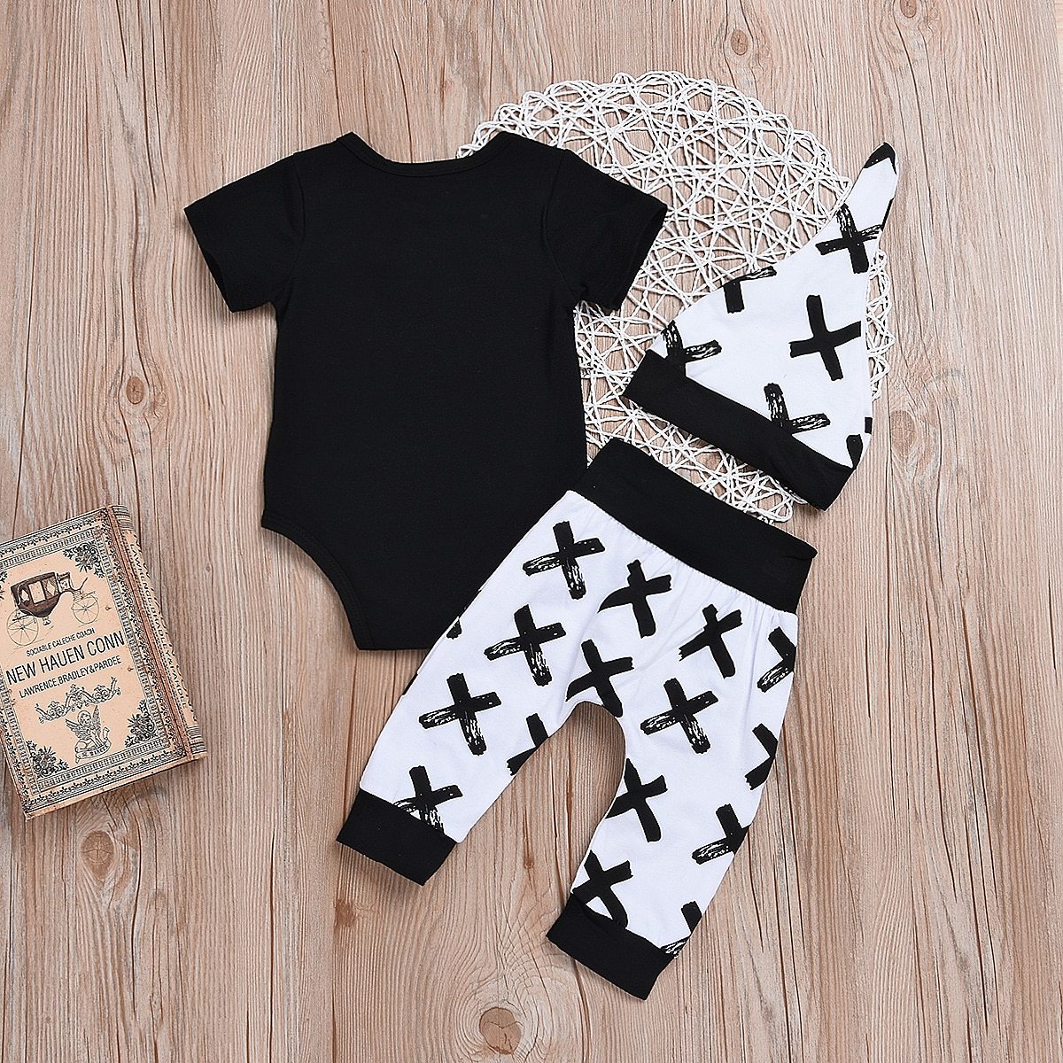 The outfit is classically themed in black and white color. The romper is made from soft fabric and is extremely comfortable to wear. The pullover design makes it easier for dressing and the snap poppers at the bottom are convenient for quick diaper changes. The elastic band provides a perfect fitting and allows free movement of the feet. The matching cap completes the look of the outfit and provides the warmth needed.