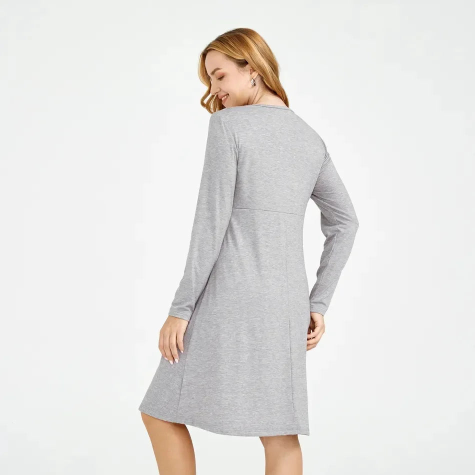 ✨ Stay comfortable and stylish with this solid-color maternity nursing dress – a practical and elegant choice for every mom.