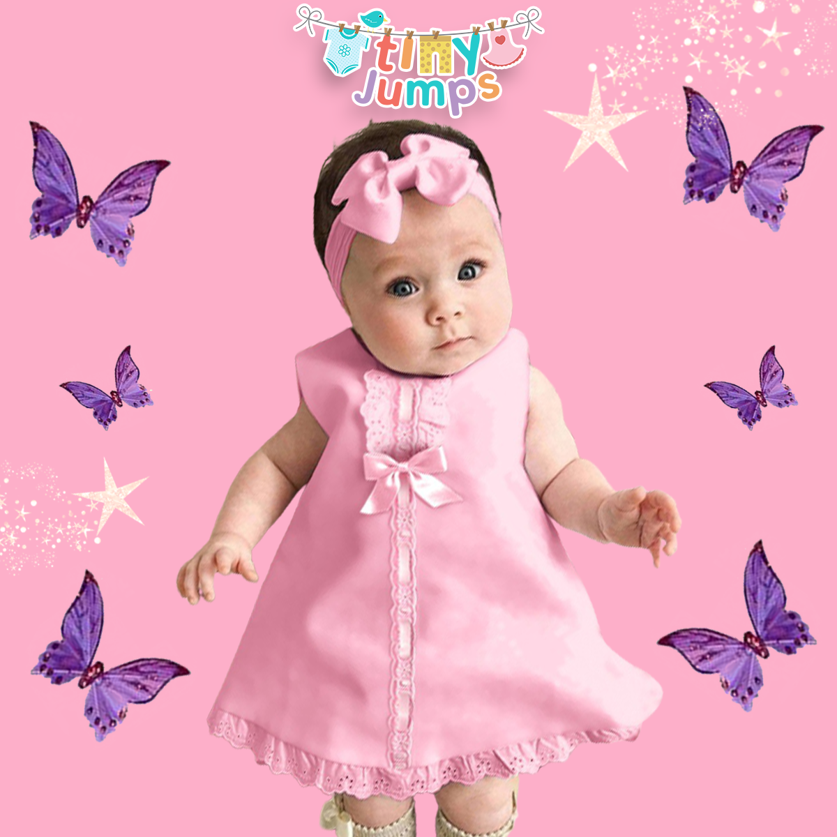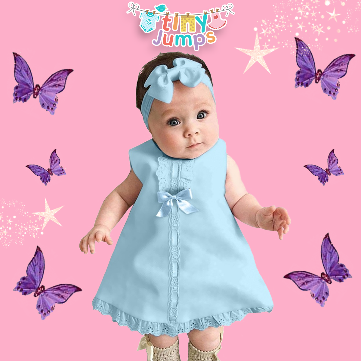 Adorn your little angels with our adorable maxi dress that comes with a matching headband. The sleeveless dress has a lace design on the neckline and borders. There is an adorable little bow on the headband and the chest. The maxi has a catch shutting for simple evolving. The dress is made of cotton and polyester which is delicate on a child's skin. It is intended for the adorable look of your little pixie's fairy.
