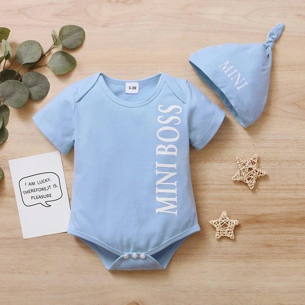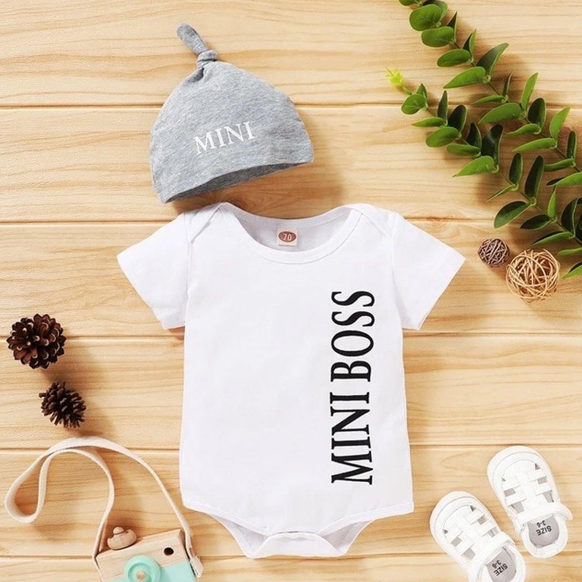 - They are paired with a baby cap made with cotton stuff and features a print “MINI”