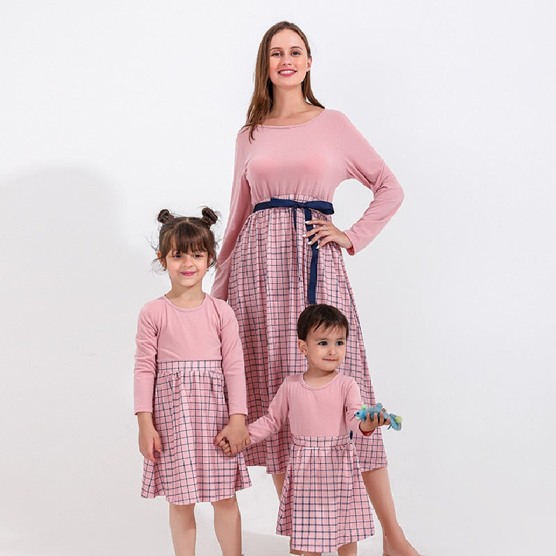 Dresses with cute checkered patterns are nothing better than mother and daughter on beautiful sunny days.