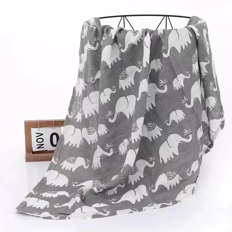 Multi-Function Soft Breathable Bamboo Cotton Muslin Swaddle Blanket – 2-Layer Newborn Wrap, Stroller & Nursing Cover (120x110cm / 47x43in)