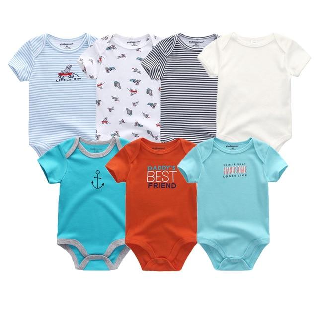 The cotton material is soft and smooth, which keeps the babies comfortable. The snap buttons at the bottom help in dressing and convenient diaper changes. Each pack consists of 7 rompers following a combination color scheme that makes it easy for the mothers to choose.