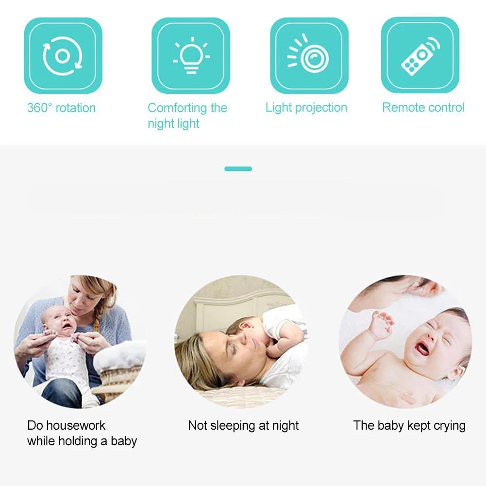 - Gives comforting light projections (red/blue/both colors alternatively) to help the baby fall asleep