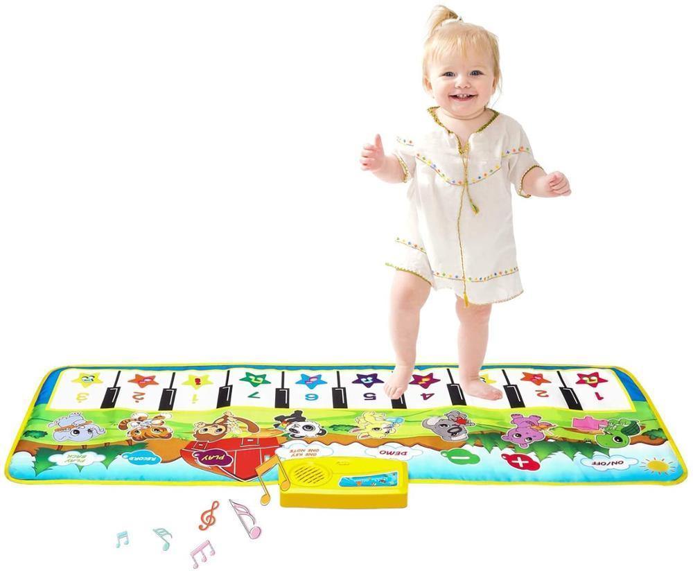 Le tapis musical comprend 10 touches de piano, 8 styles de sons musicaux (Piano, Violon, Accordéon, Trompette, Vibraphone, Hautbois, Guitare, Flûte), 9 chansons démo, et la fonction d’enregistrement & de relecture. Stimule le développement auditif des enfants.
