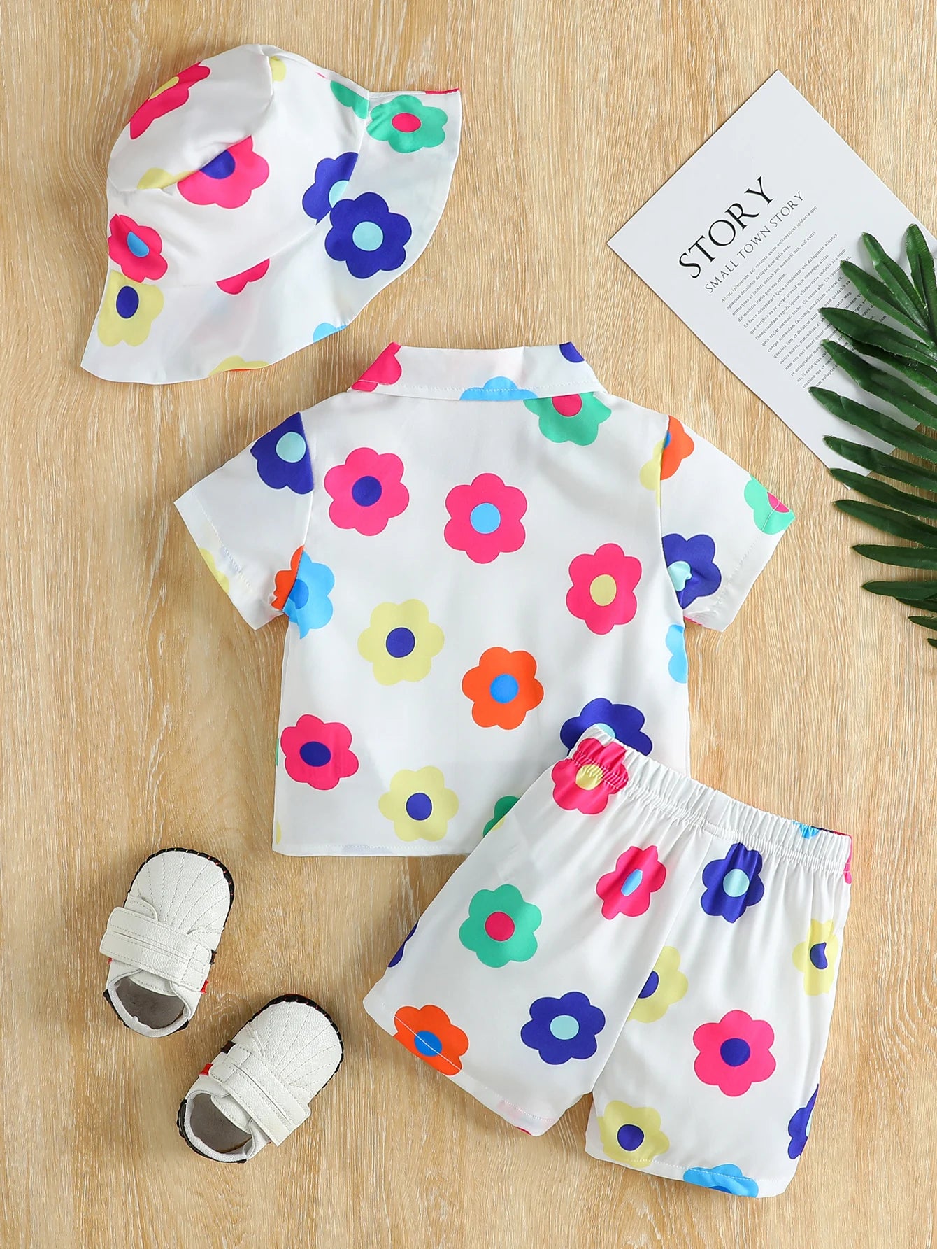 Dress your little sunshine in this vibrant and trendy 3-piece summer outfit! Perfect for both baby boys and girls, this set includes a short-sleeved shirt, elastic-waist shorts, and a matching sun hat to complete the look. Ideal for summer strolls, park days, or photo shoots! 📸☀️
