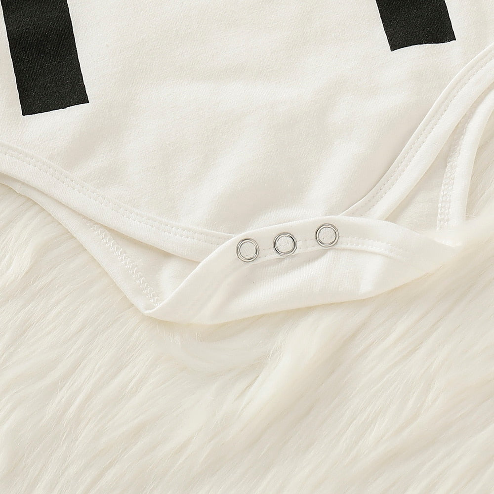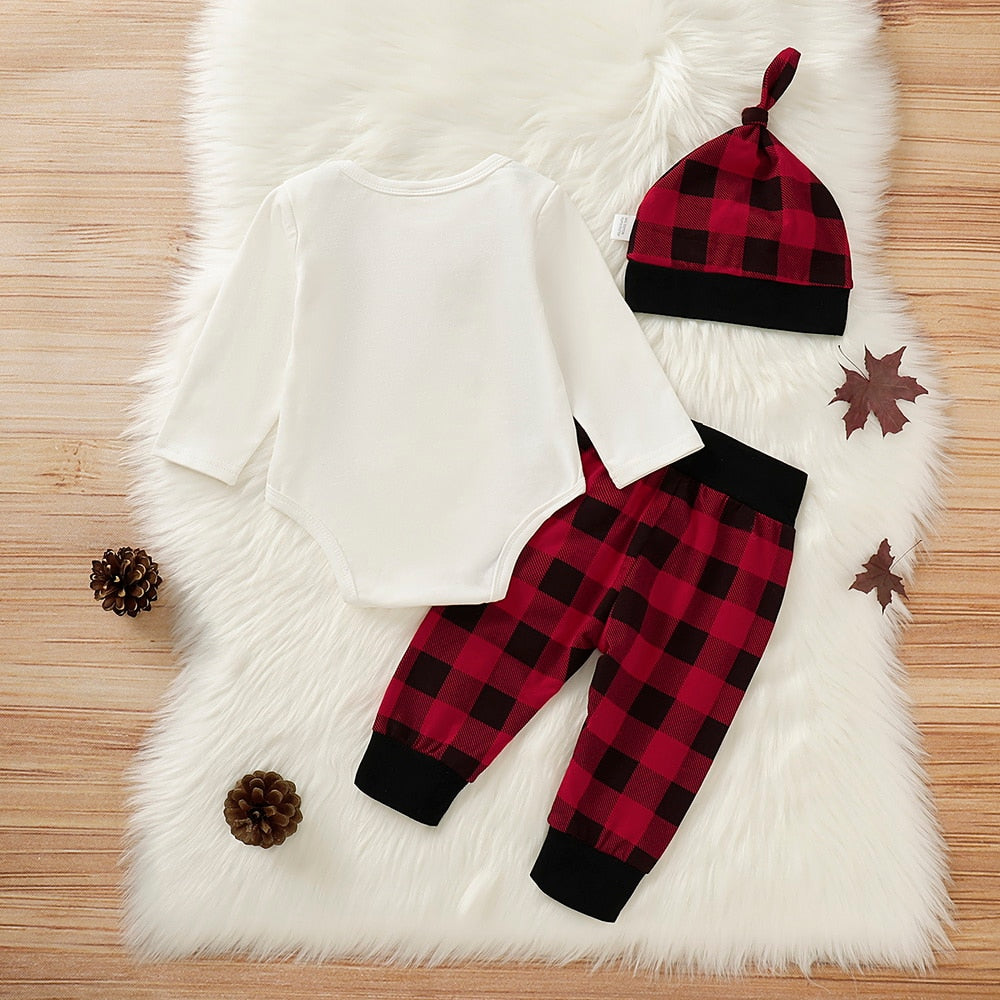 - Romper, pants, and hat included.