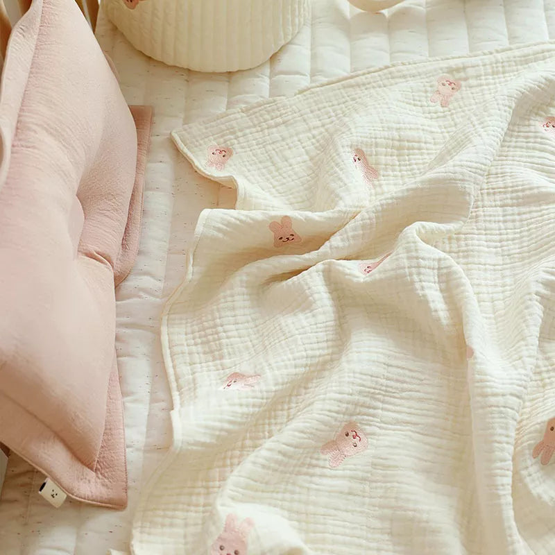 Elevate your baby's comfort with our charming Newborn Baby Bear Blanket, crafted from high-quality cotton for a soft and snug feel. Designed with meticulous attention to detail, this blanket features a fashionable embroidery bear pattern, adding a touch of sweetness to your little one's sleep.