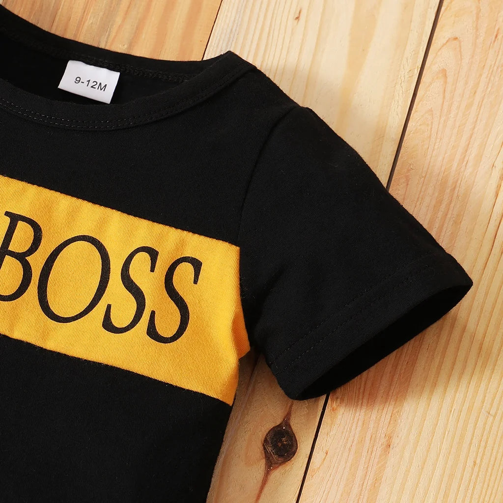 Newborn Baby Boy Summer Casual Set: Letters Print T-shirt + Shorts