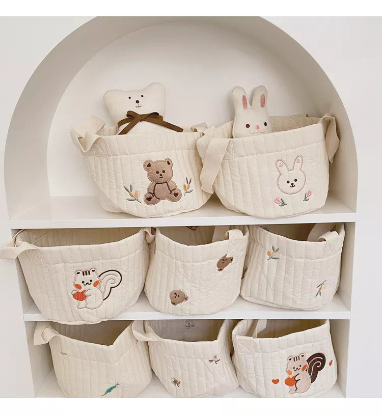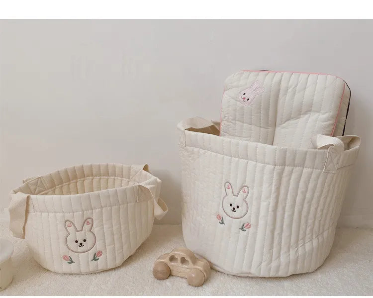 Premium Cotton Fabric: The main material, soft and durable cotton fabric, ensures a gentle touch for your baby's delicate items while maintaining a sturdy structure.