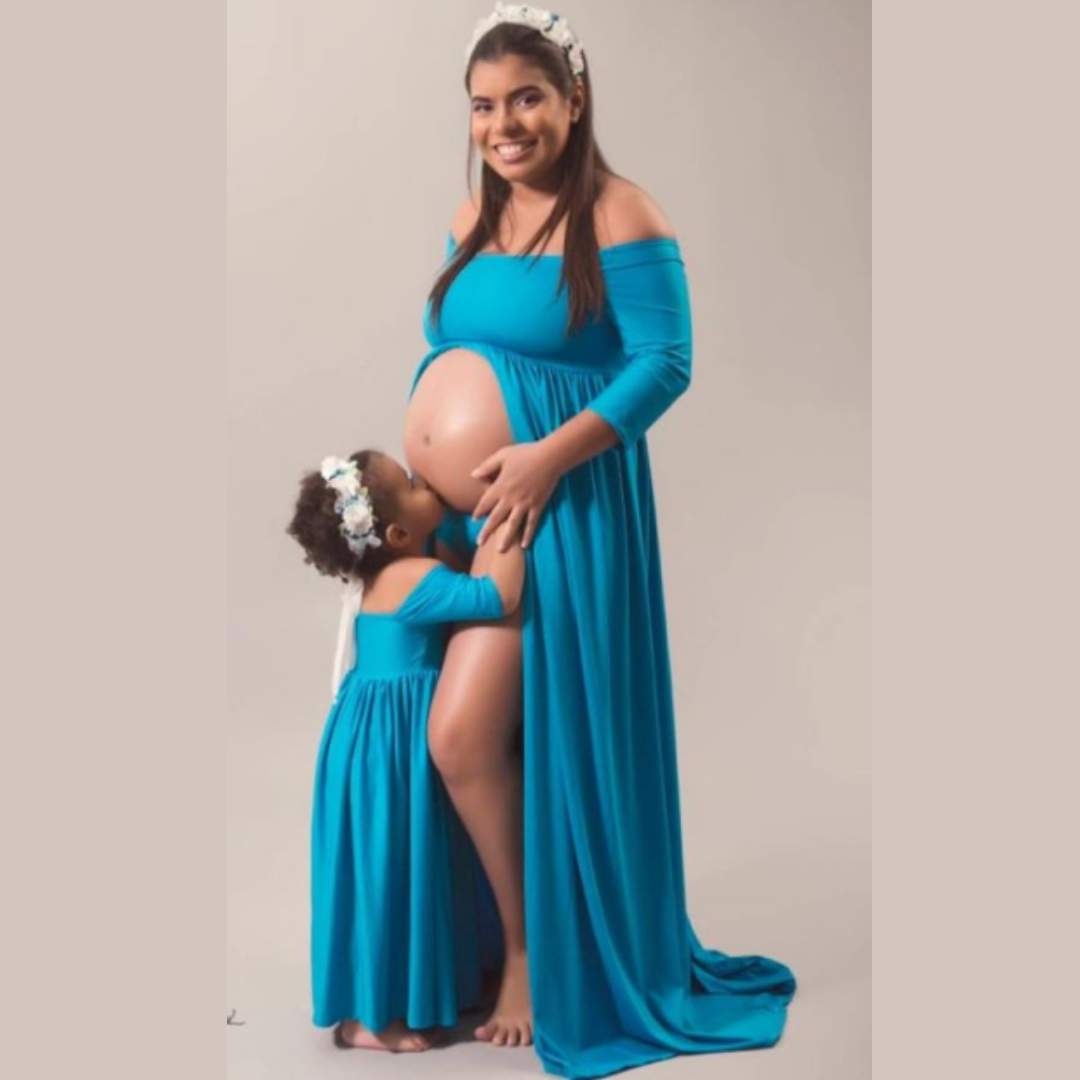 Off Shoulder Maternity Maxi Dress Mom and Me Matching Outfit