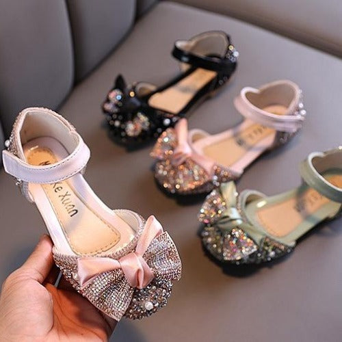 Finding the best comfy shoes for your little one? This pair of Pearl Rhinestones Bow Open Side Princess Shoes is definitely a hand-picked one from our collections! A unique design that's perfect to suit your princess' fashion dresses!