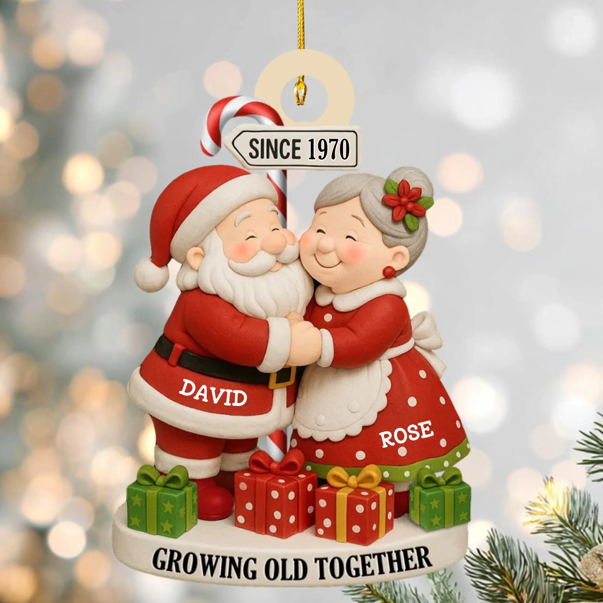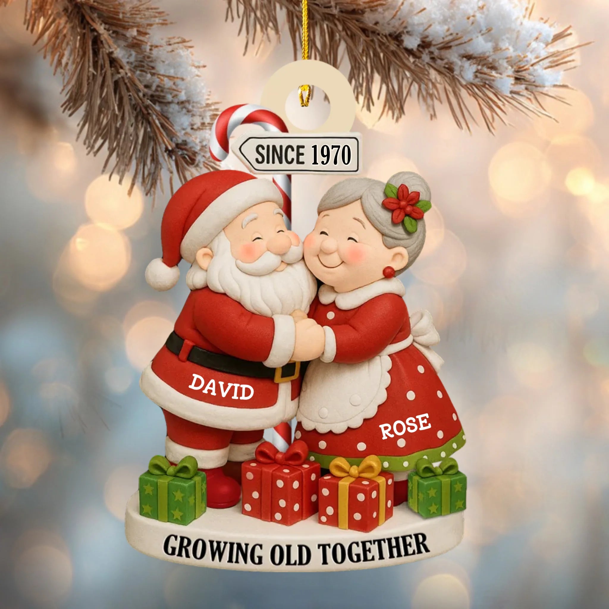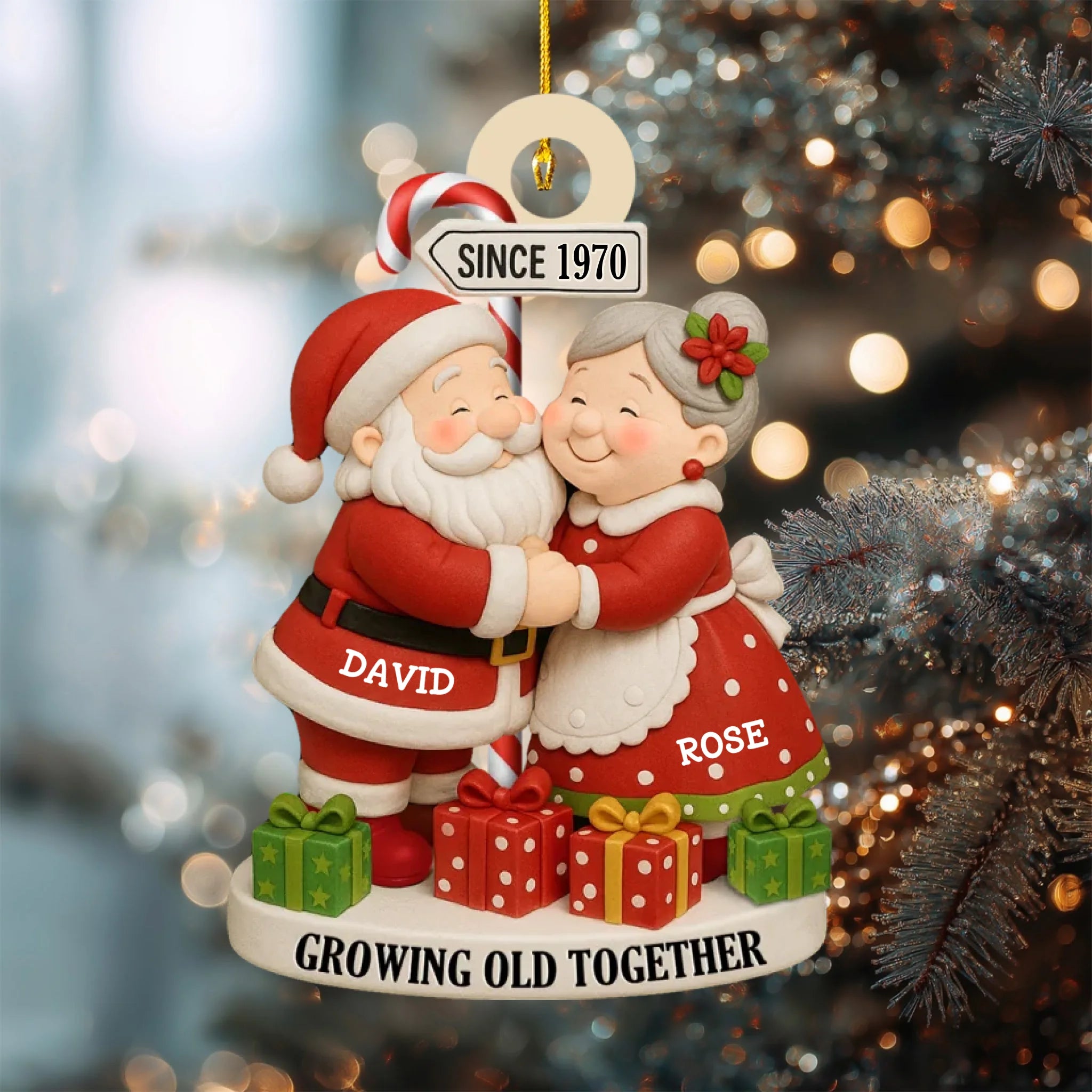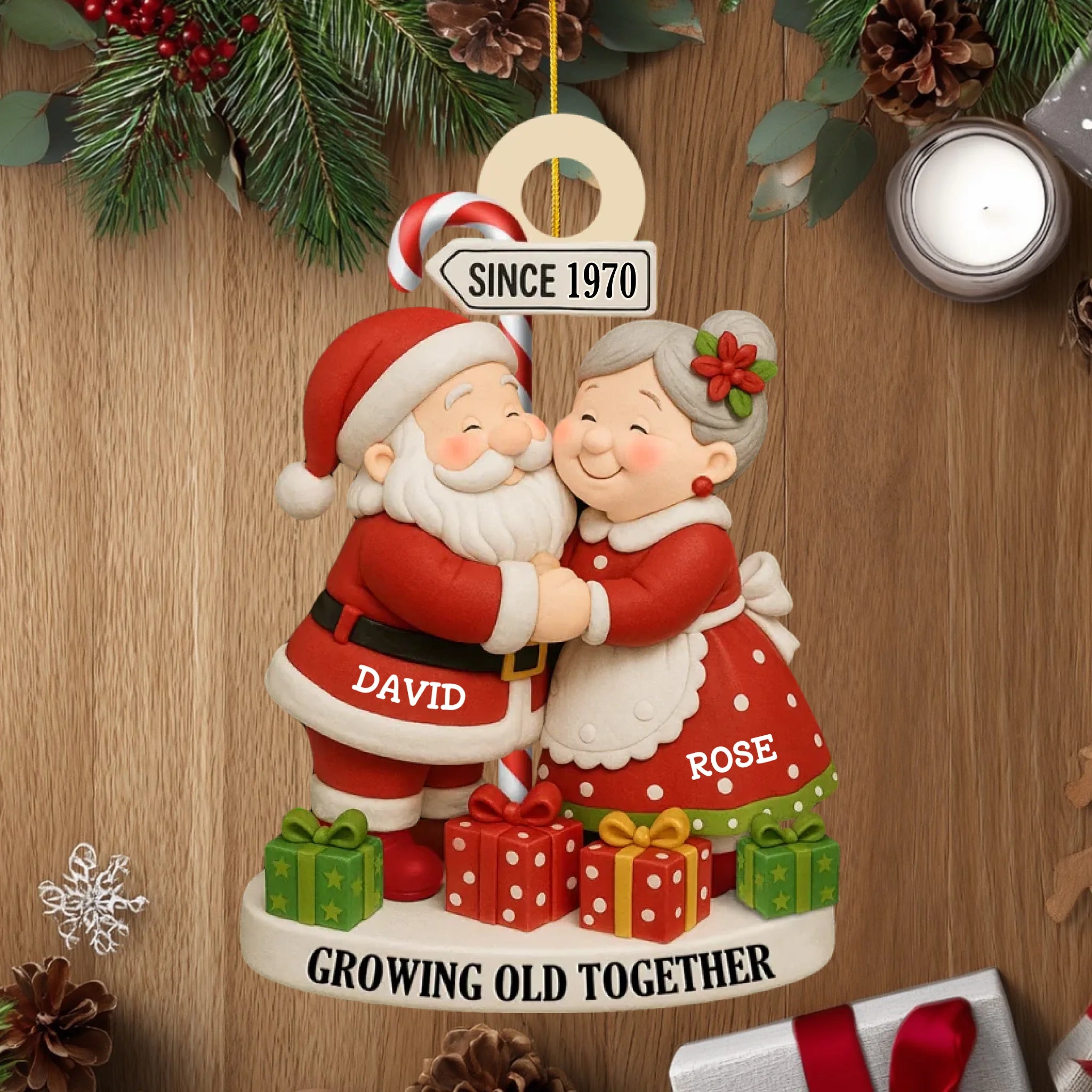 Personalized Christmas Ornament for Couples – Santa & Mrs. Claus “Growing Old Together” Custom Wooden Decoration with Names and Year