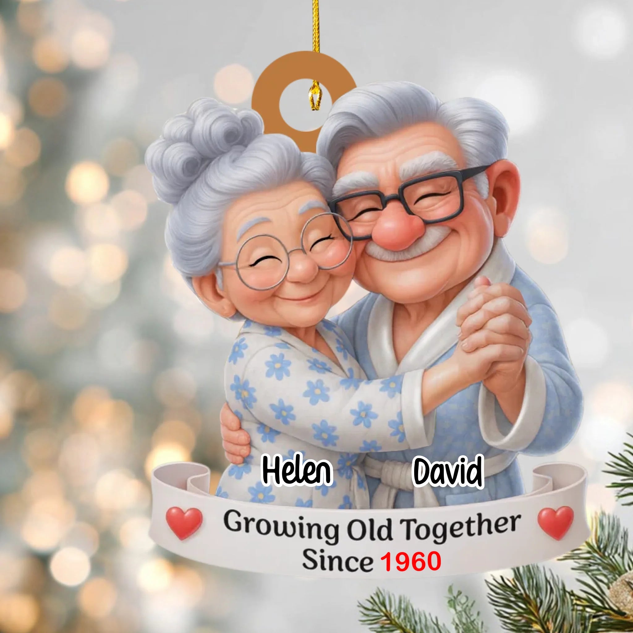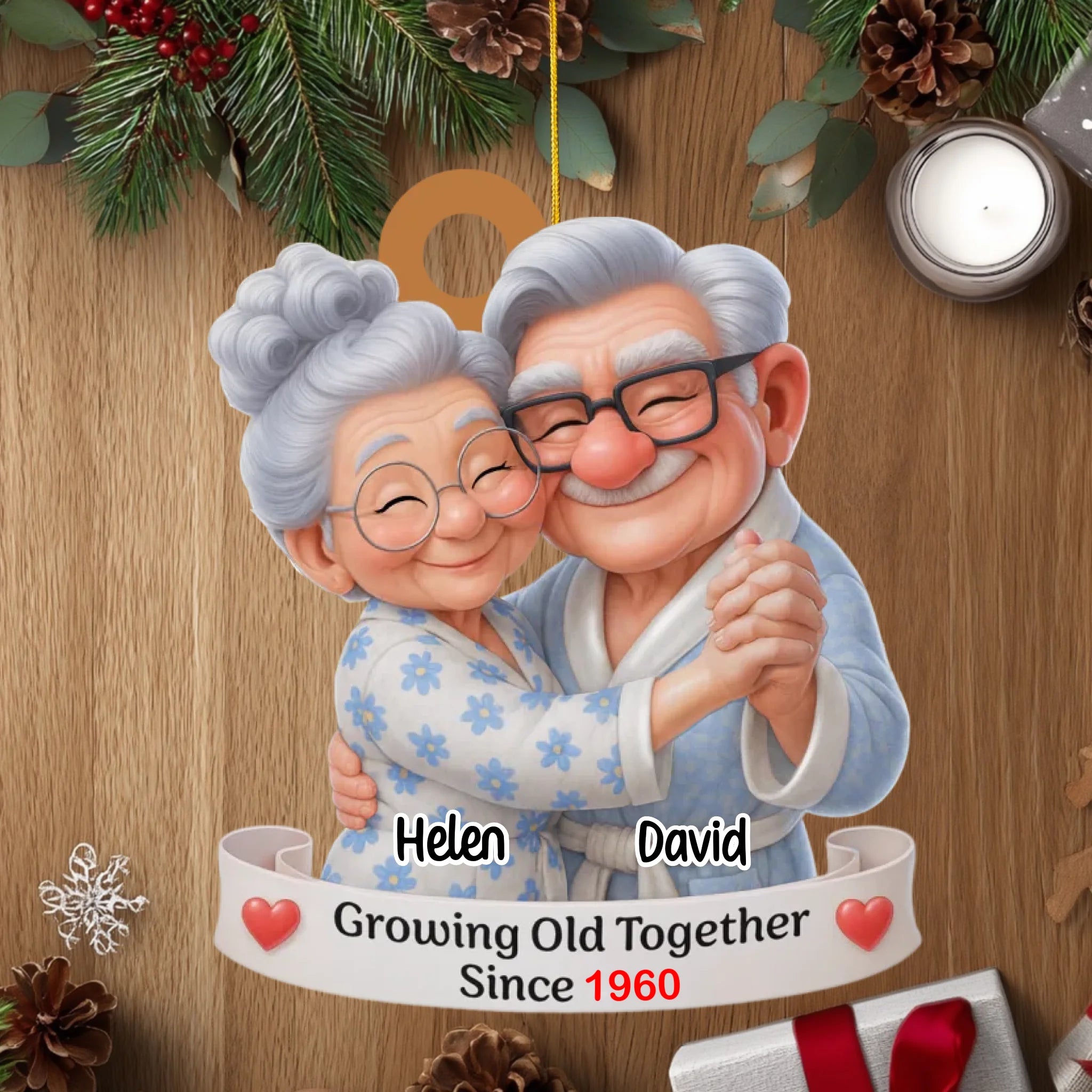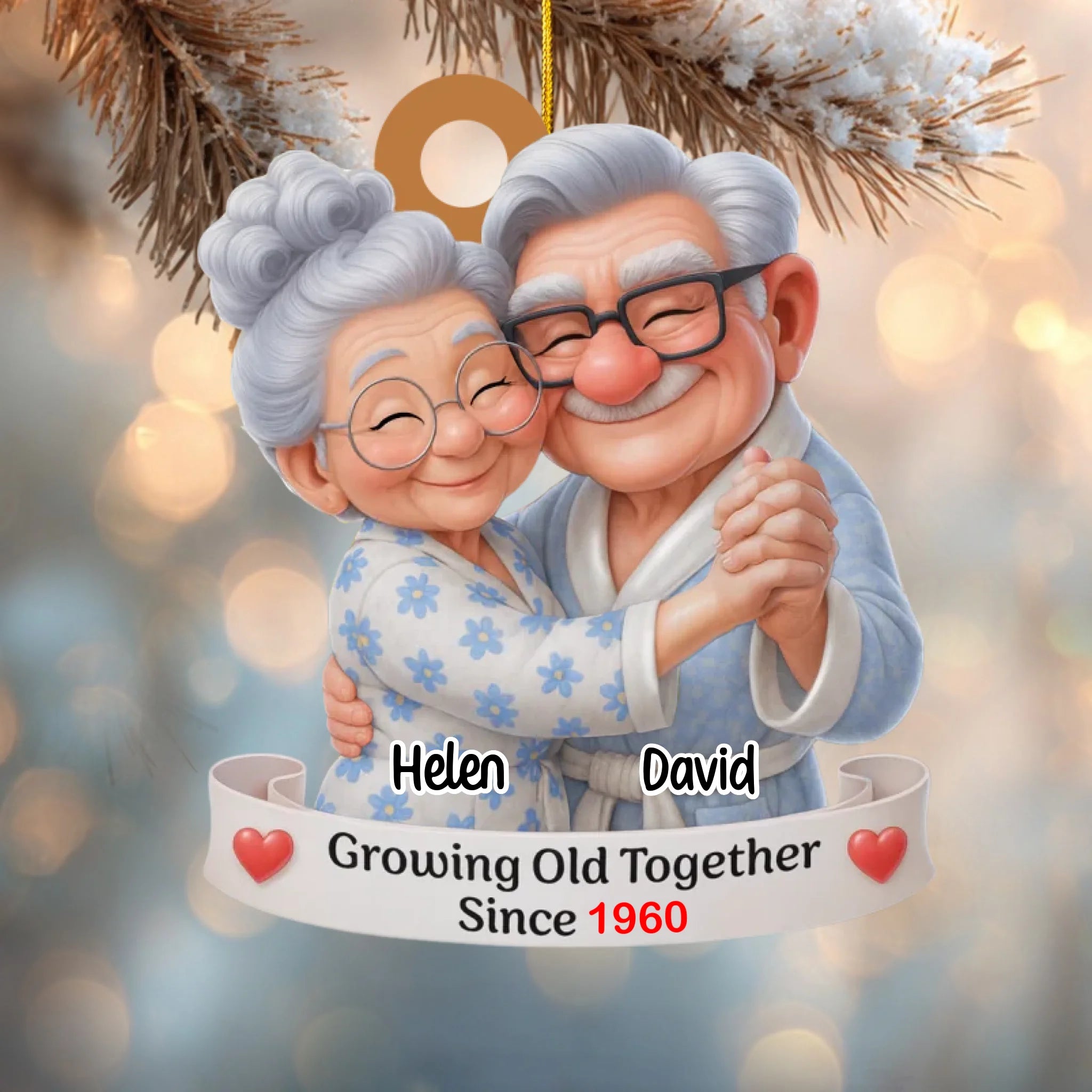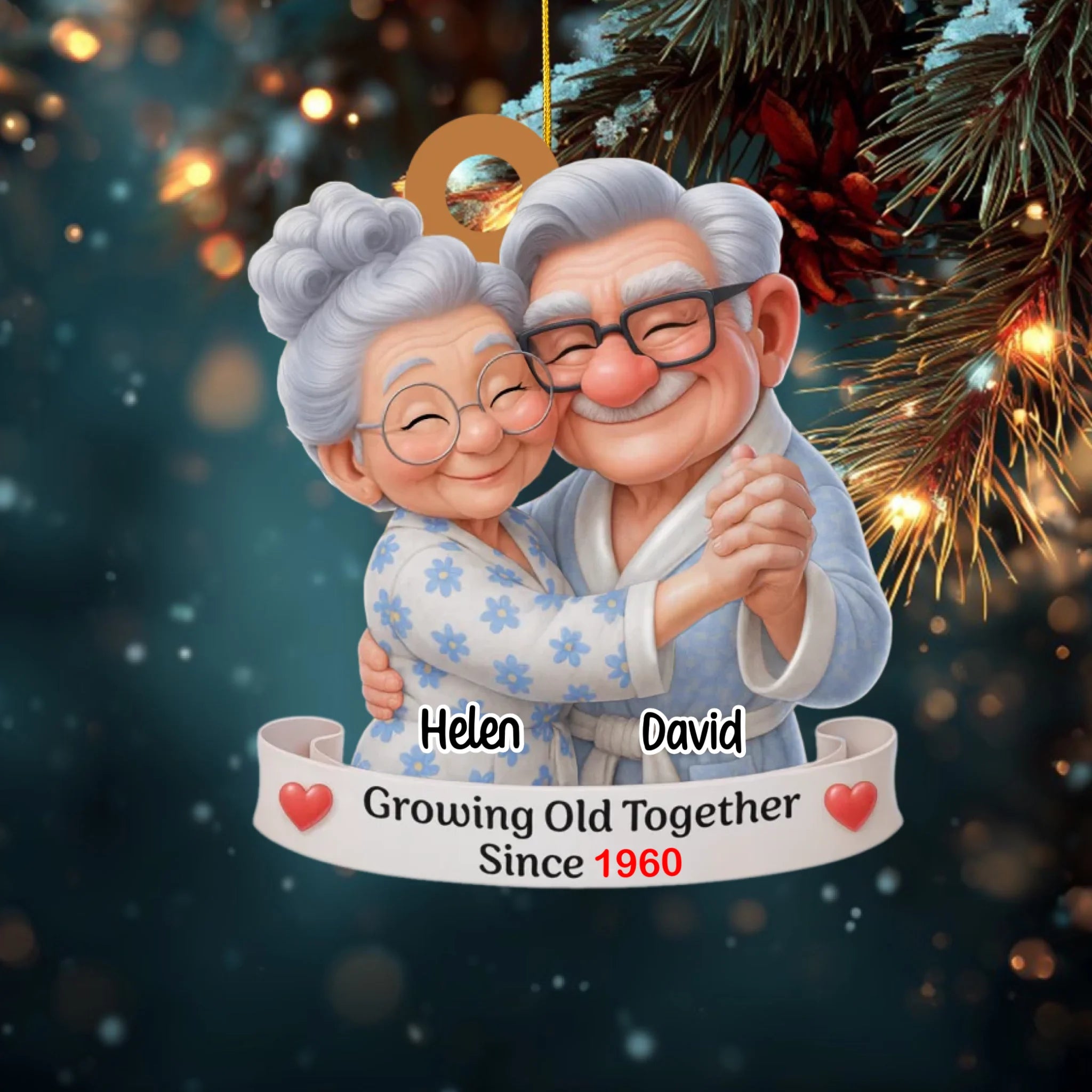 Personalized Elderly Couple Christmas Ornament – Growing Old Together Since [Year], Custom Names & Skin Tones, Anniversary & Holiday Gift for Couples