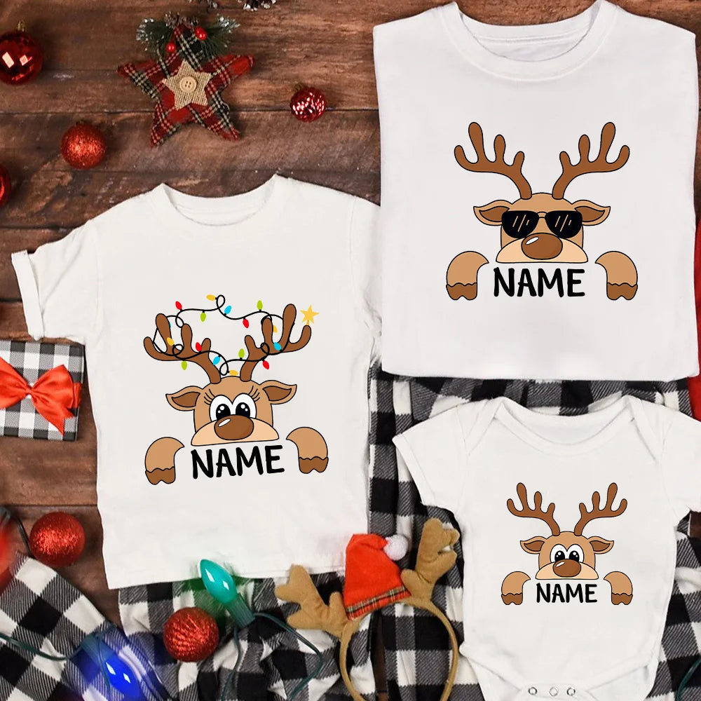Personalized Family Christmas Reindeer Shirts Custom Family Name Matching Outfits – Mom, Dad, Kids & Baby