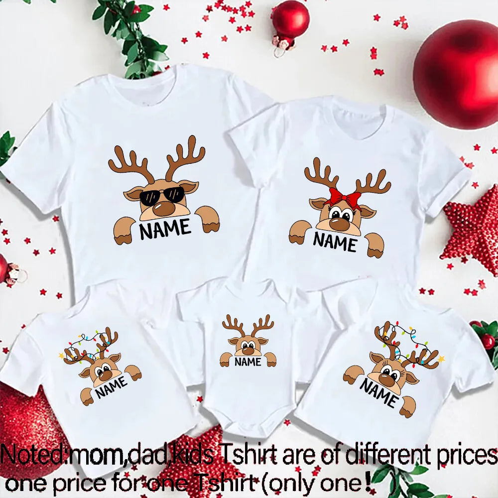 Create magical holiday memories with these adorable personalized family Christmas shirts featuring a cute reindeer design. Each piece can be customized with your family members’ names, making every outfit truly special and meaningful. Perfect for Christmas photos, family parties, or cozy matching at home during the festive season.