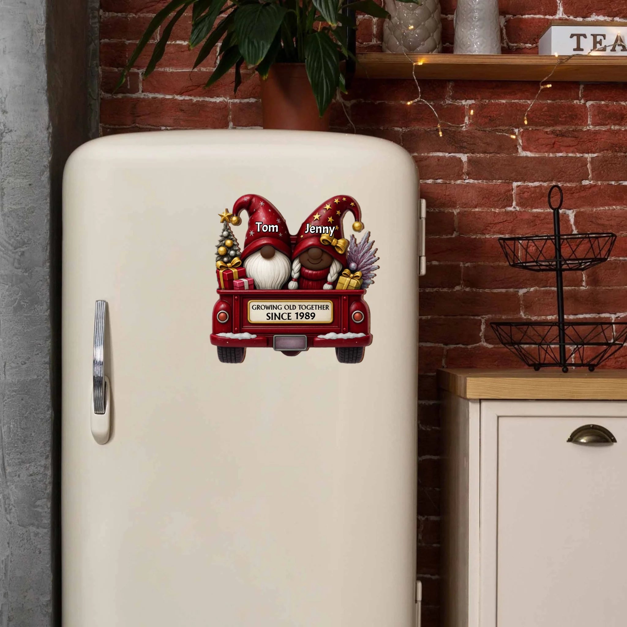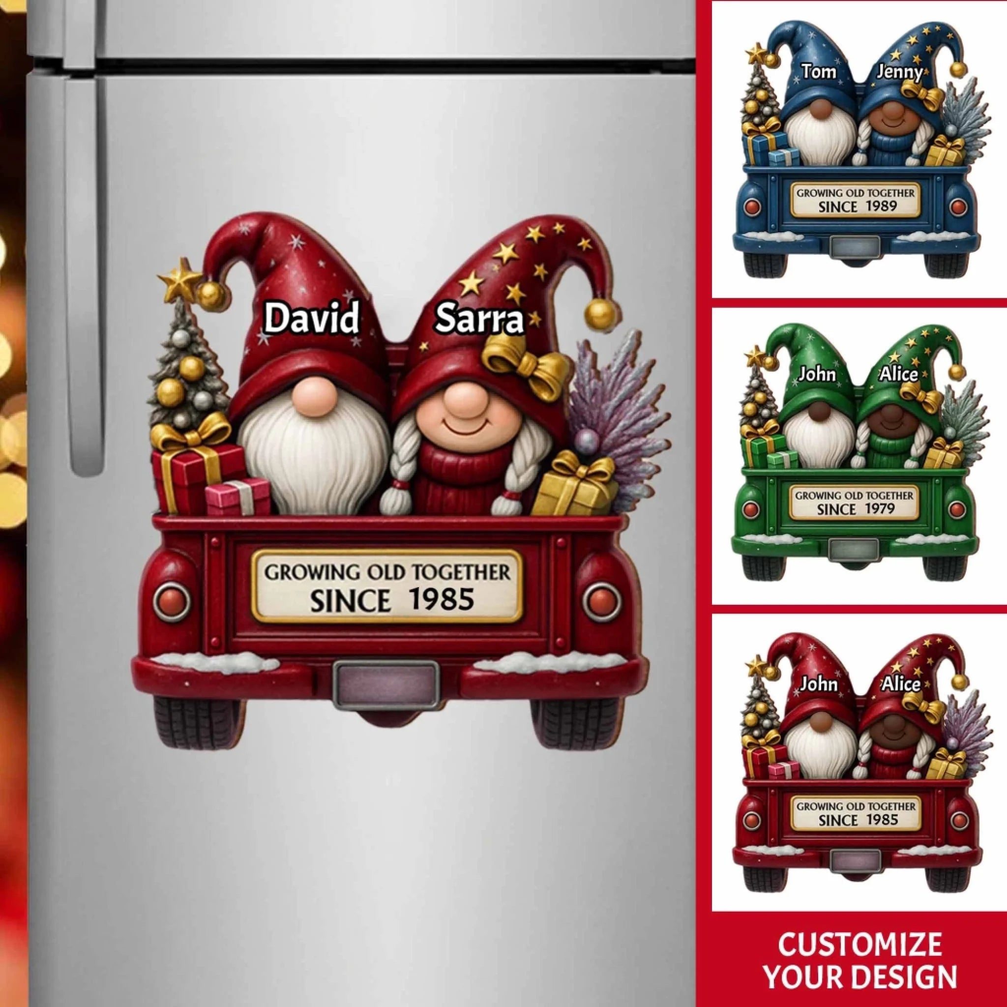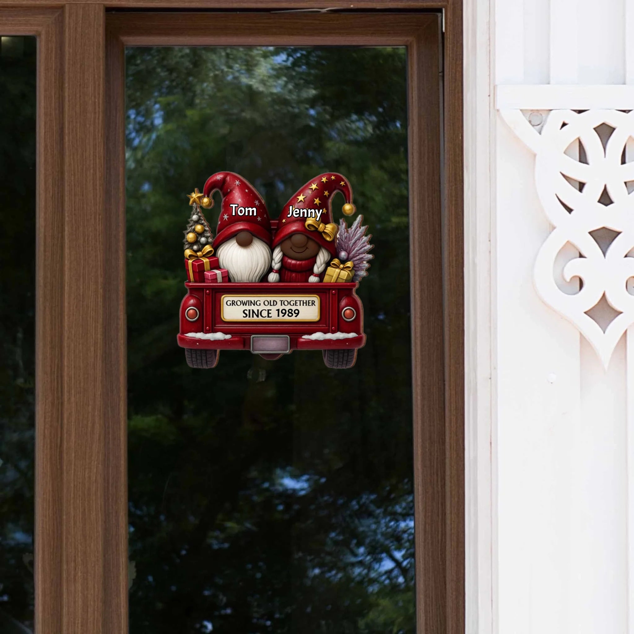 Personalized Gnome Couple Sticker Decal – Custom Husband and Wife Christmas Gift, “Growing Old Together Since…” Car Sticker, Cute Holiday Decoration