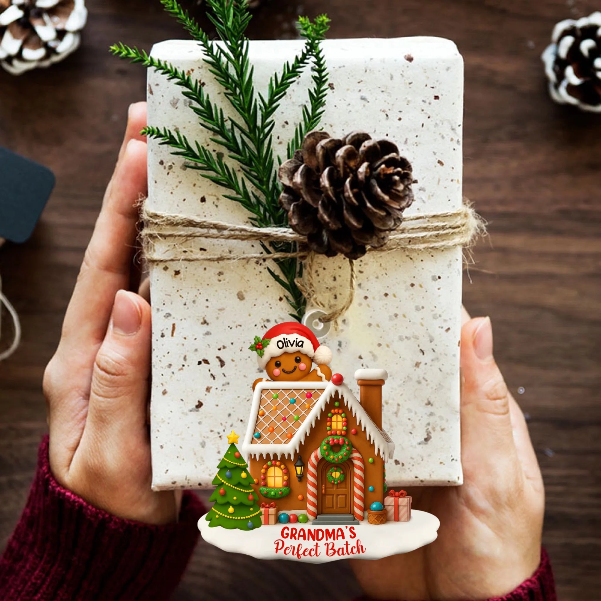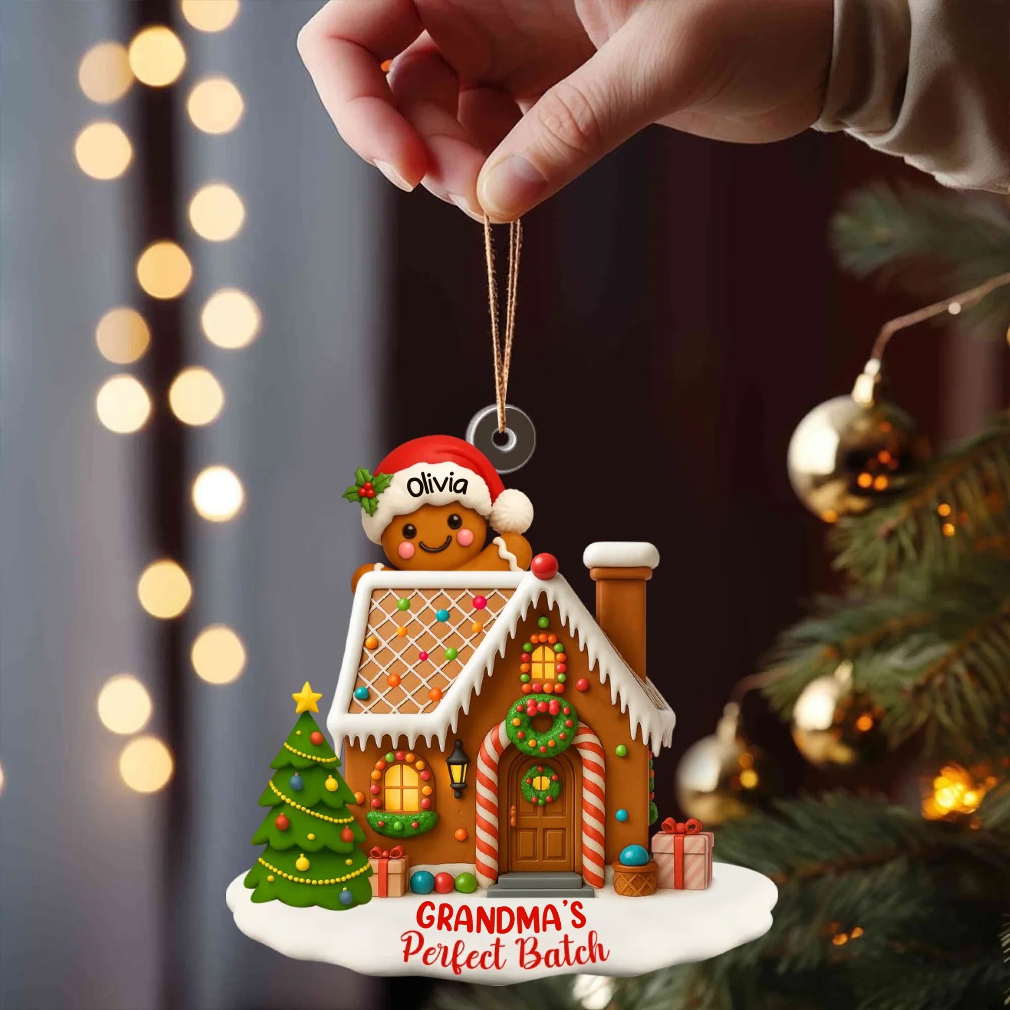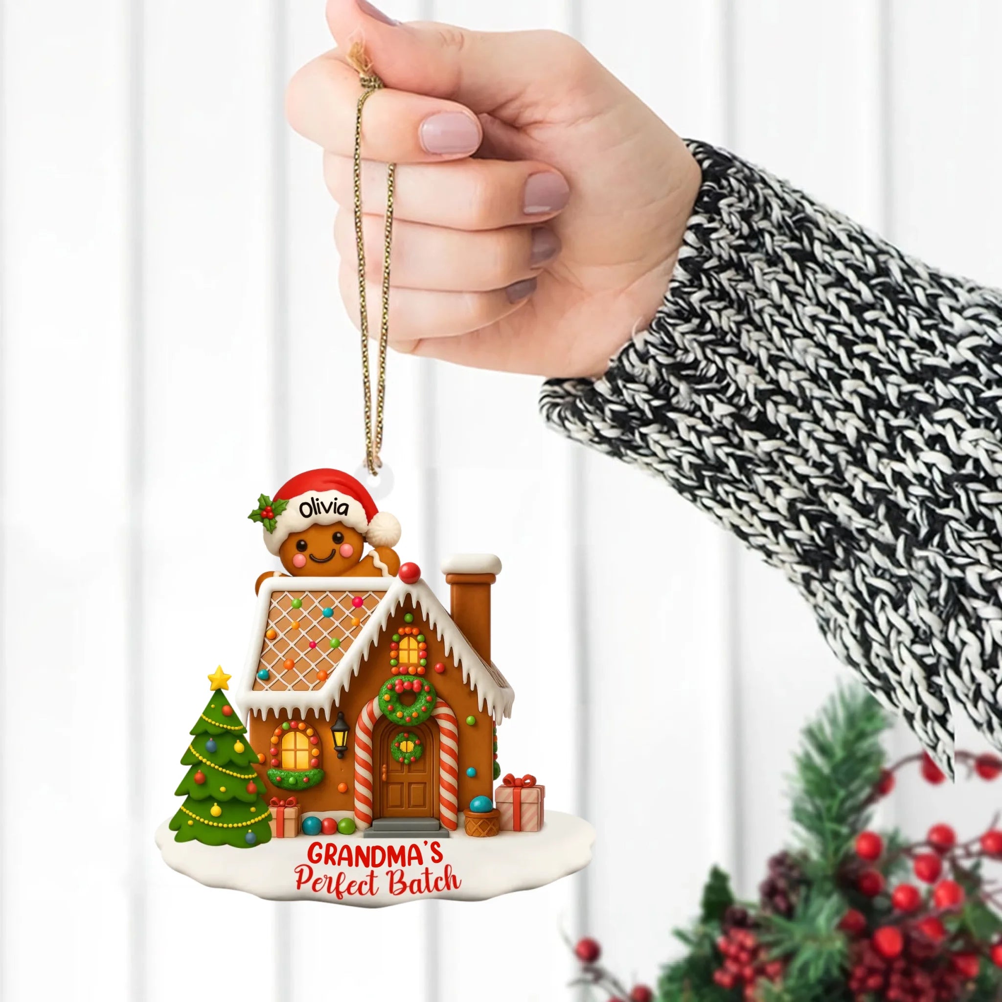 Personalized Grandma’s Perfect Batch Acrylic Ornament – Custom Gingerbread House Christmas Decoration with Kids’ Names