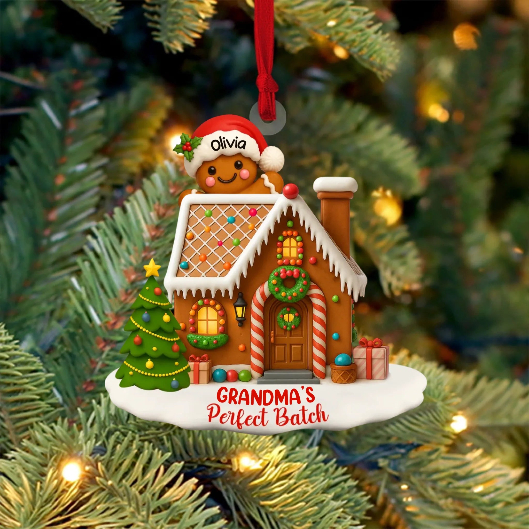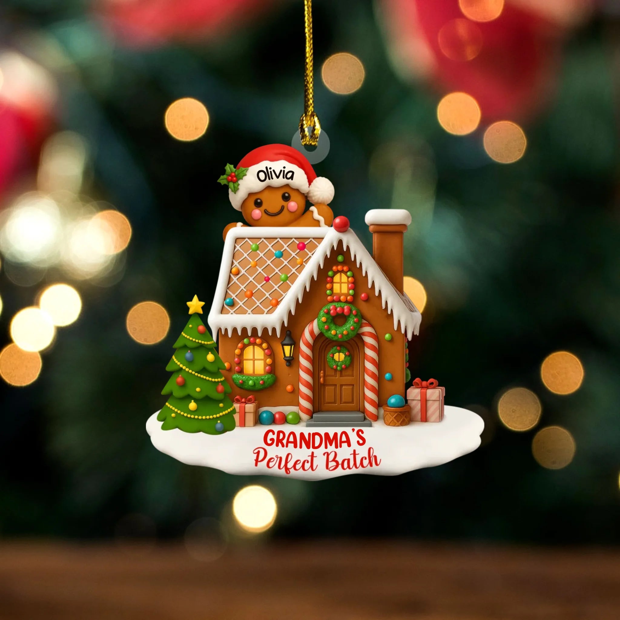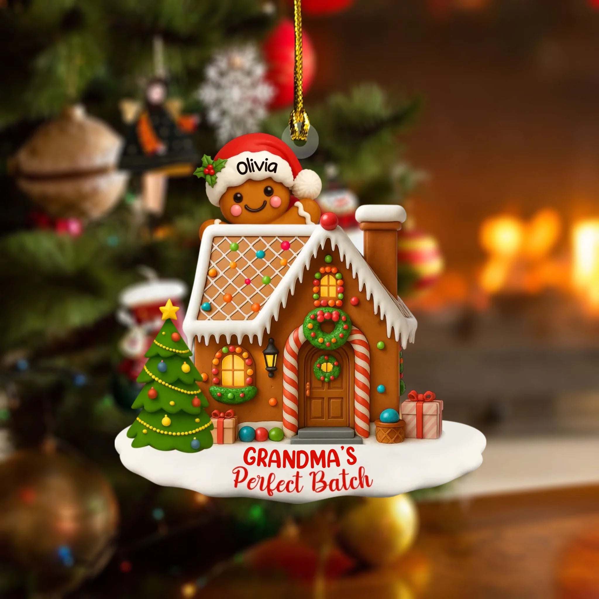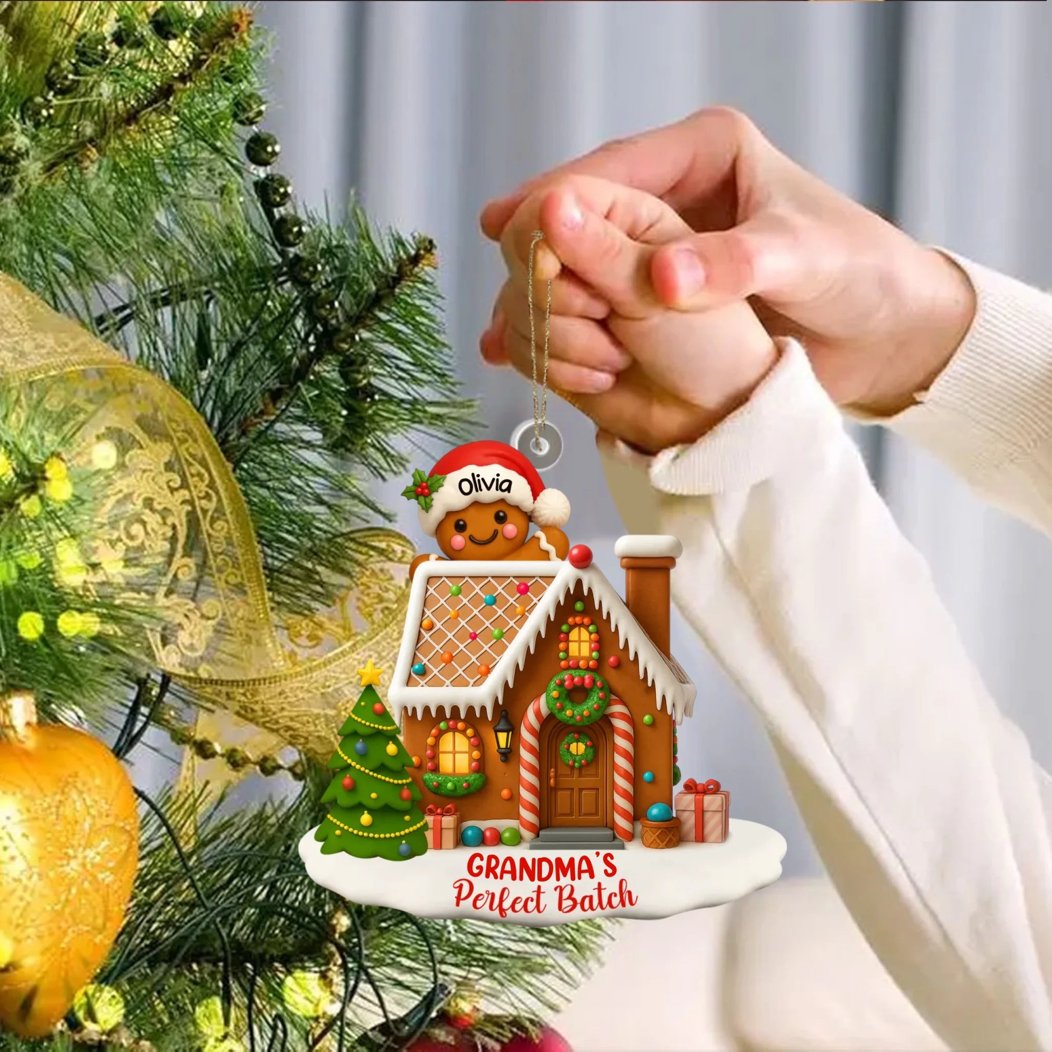 Personalized Grandma’s Perfect Batch Acrylic Ornament – Custom Gingerbread House Christmas Decoration with Kids’ Names