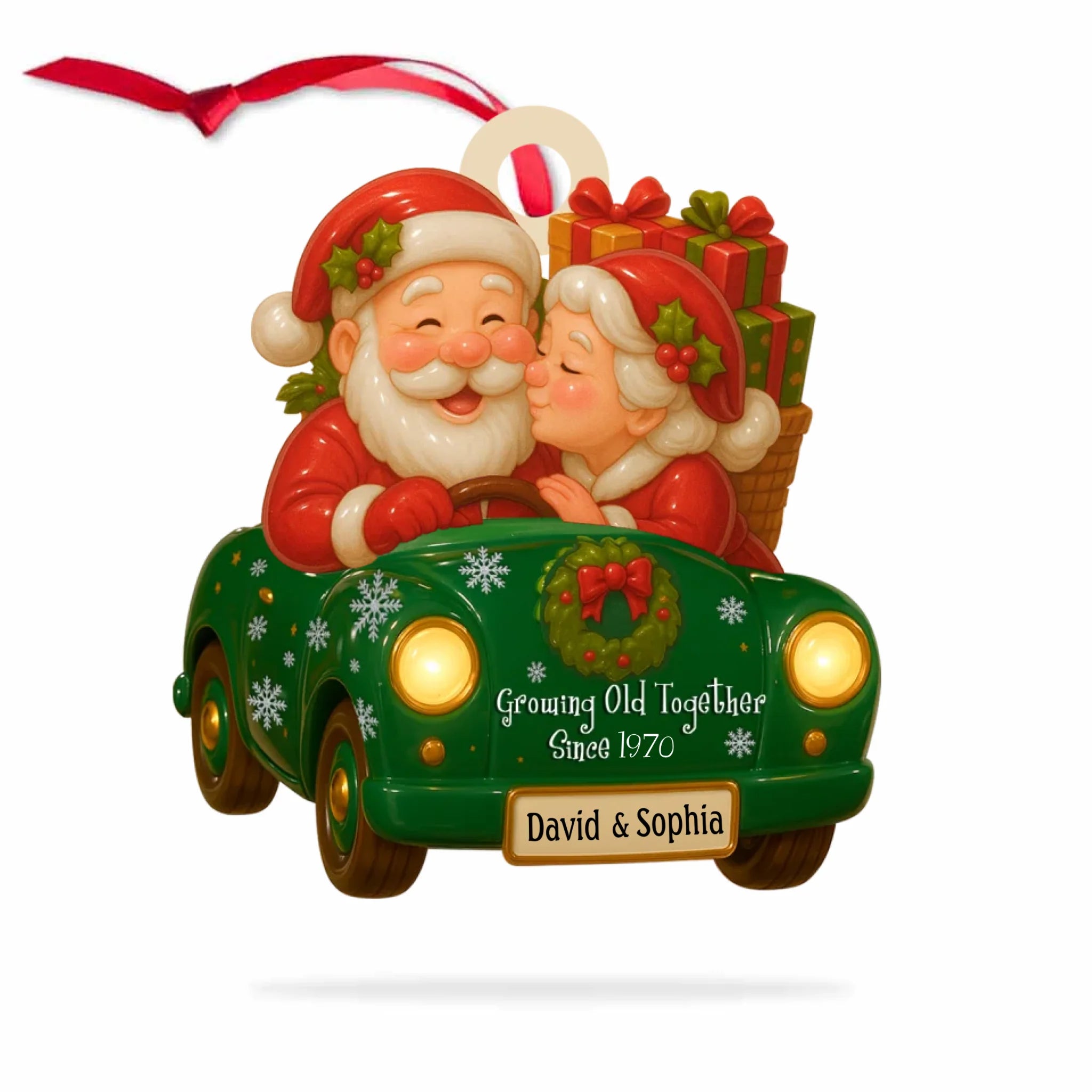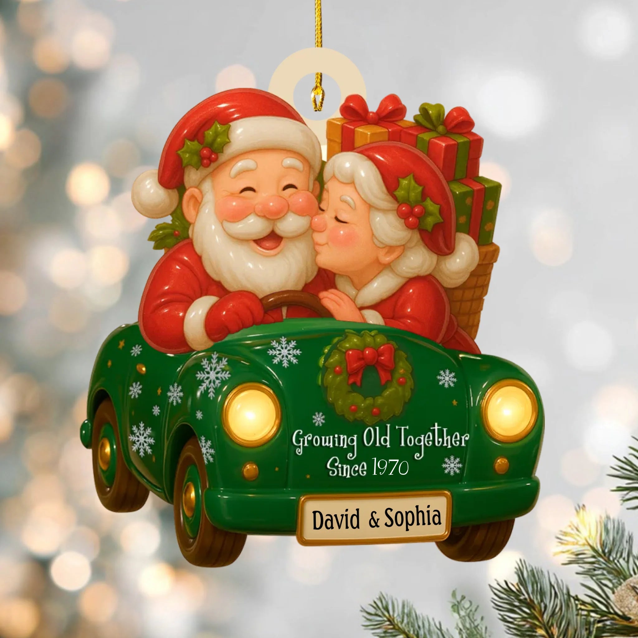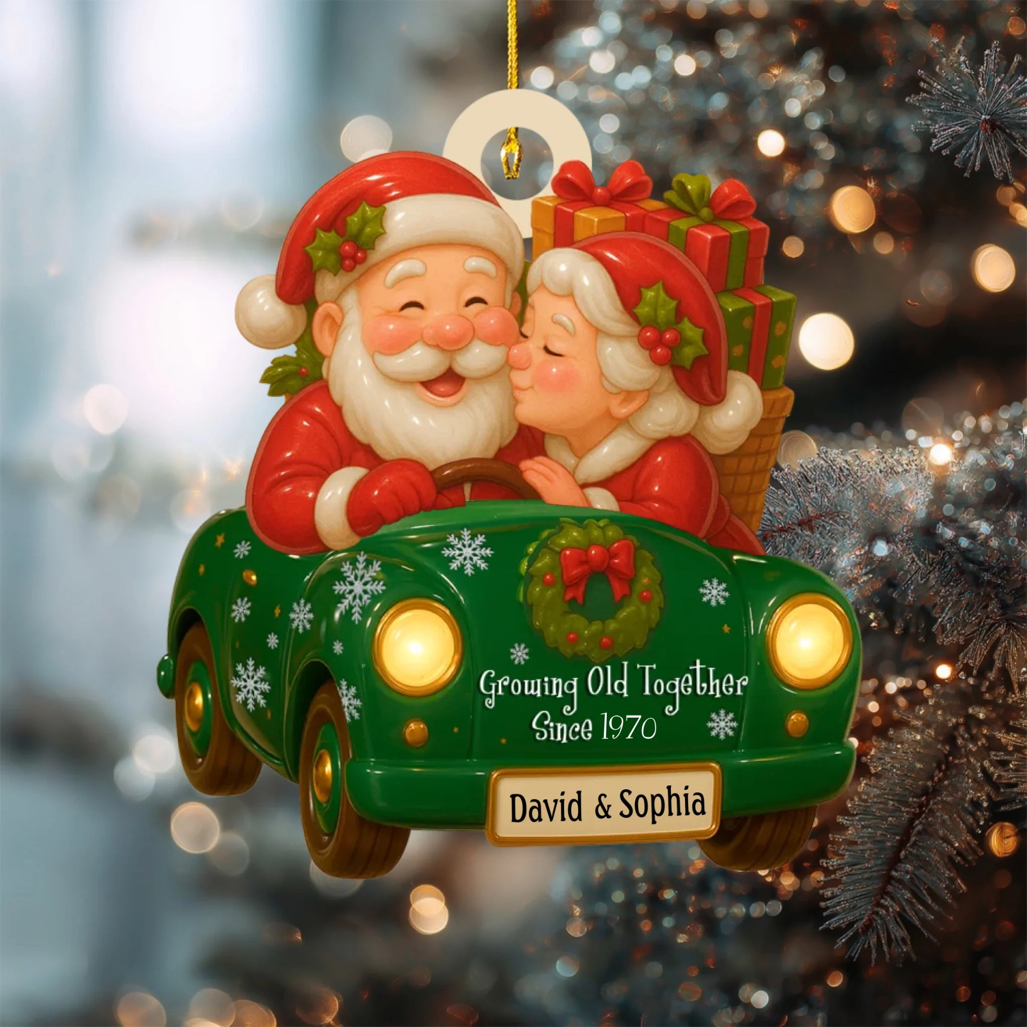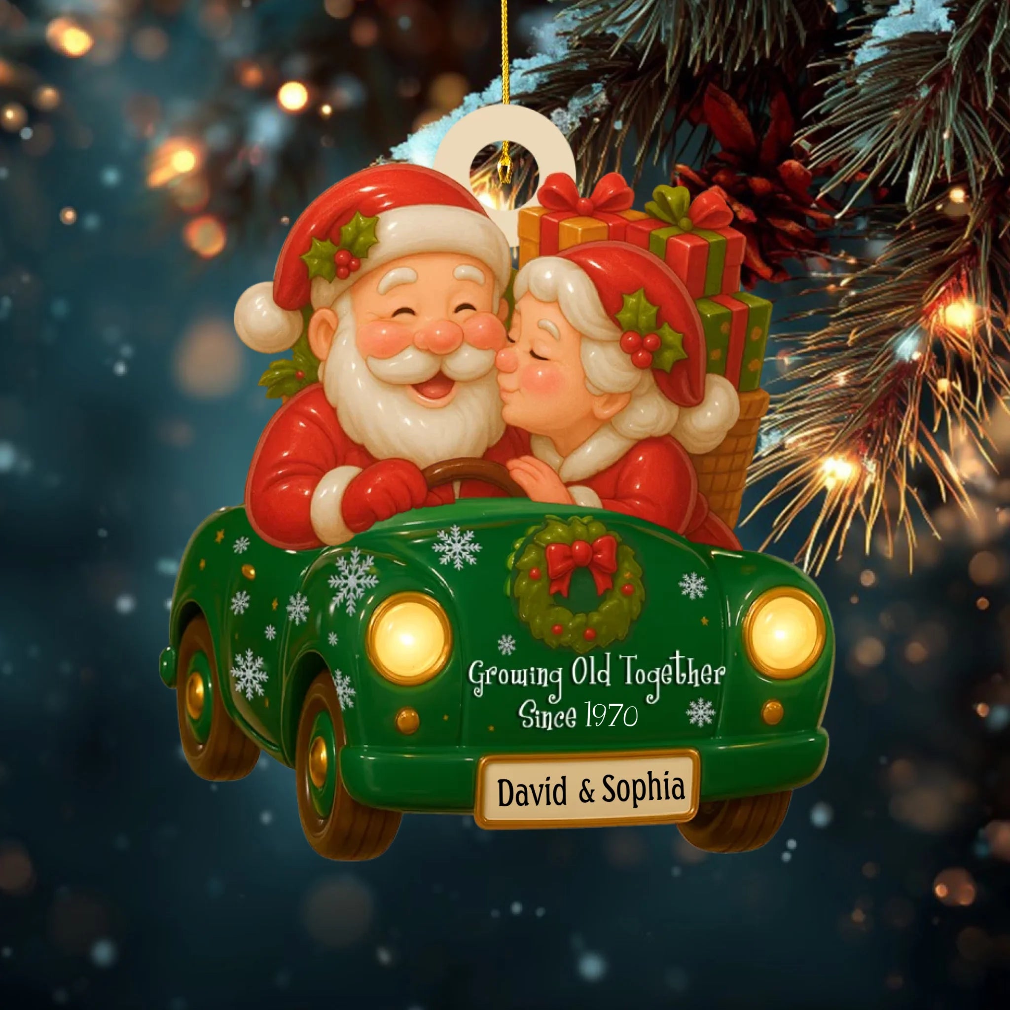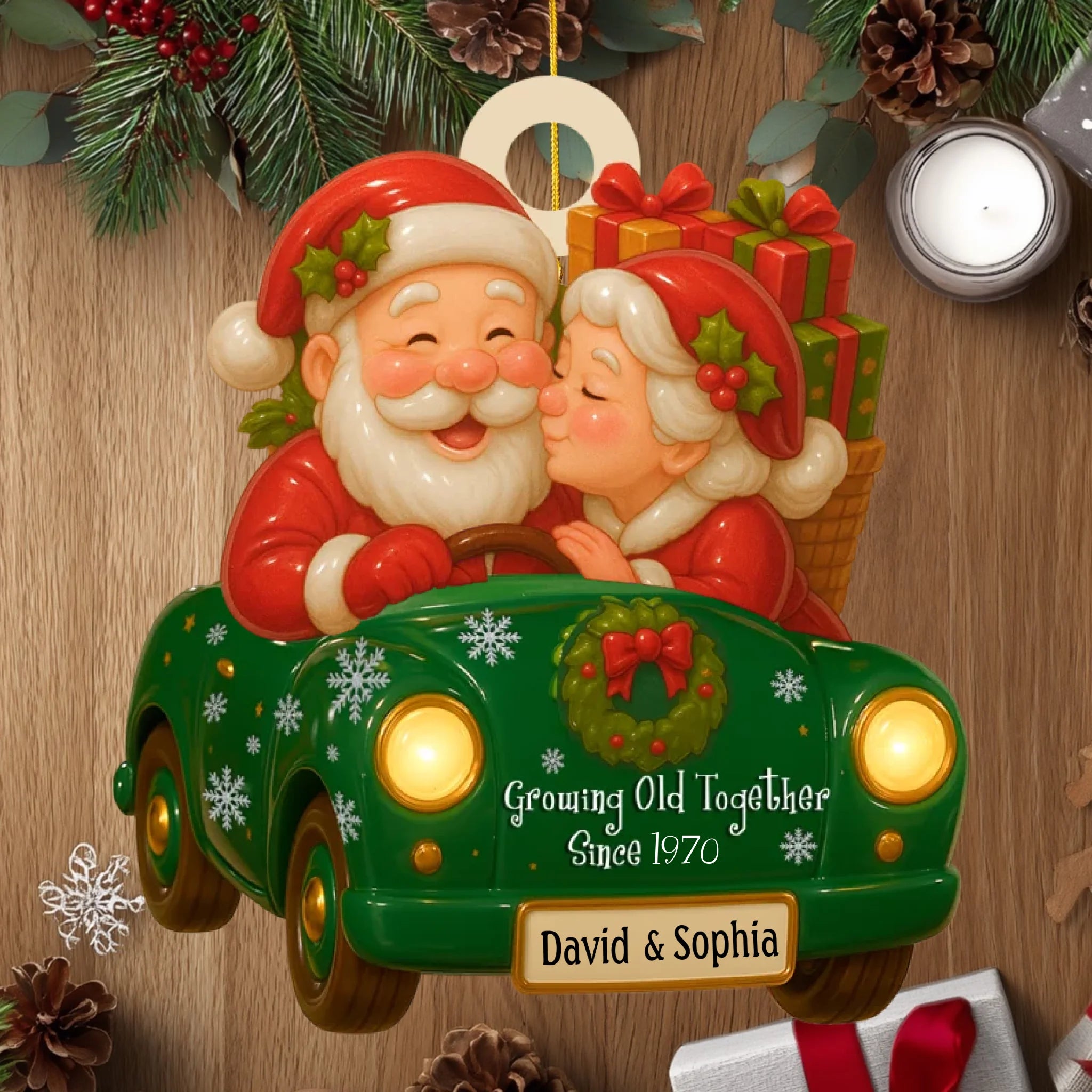 Personalized Old Couple Santa & Mrs. Claus Ornament — “Growing Old Together Since [Year]” • Custom Wooden Christmas Keepsake for Couples