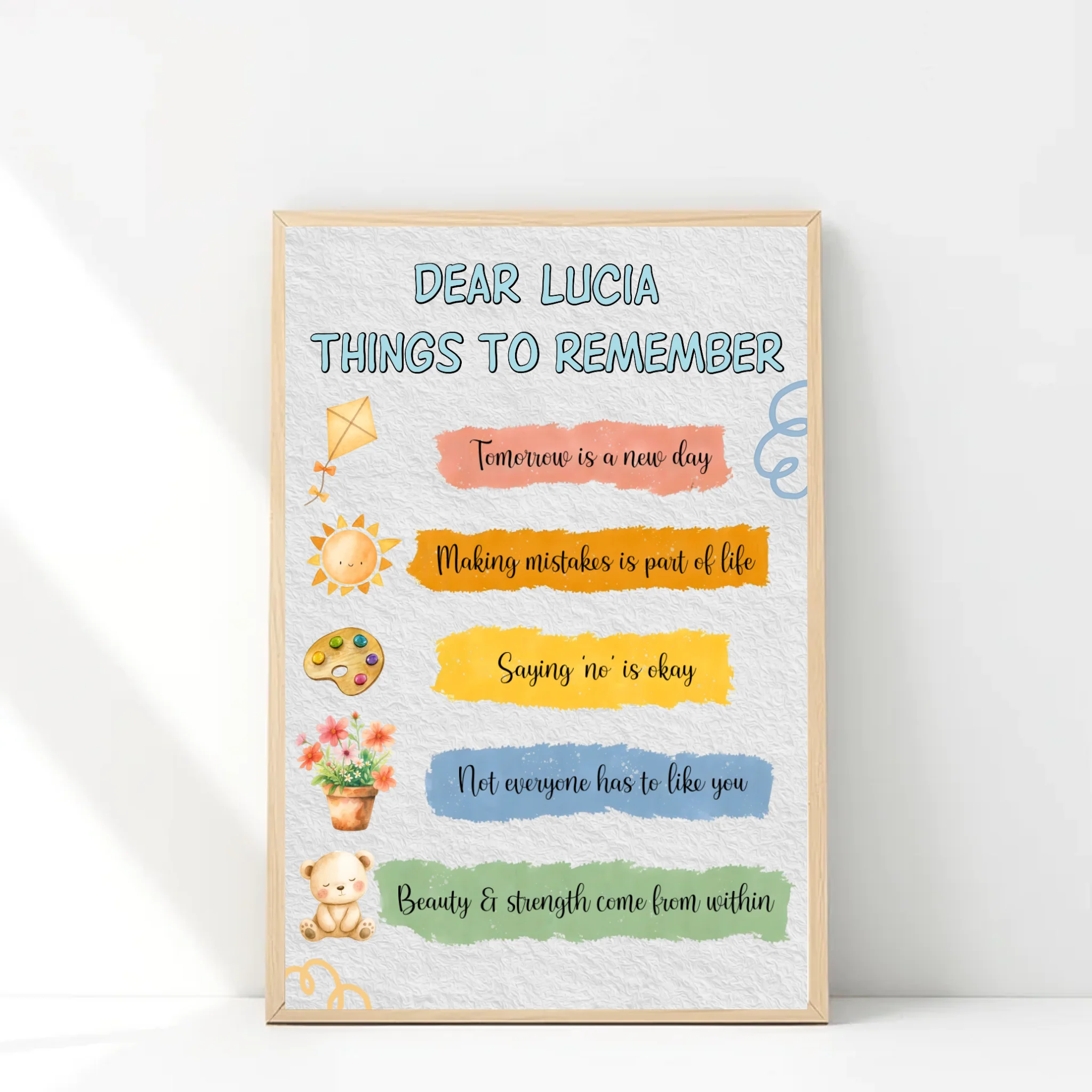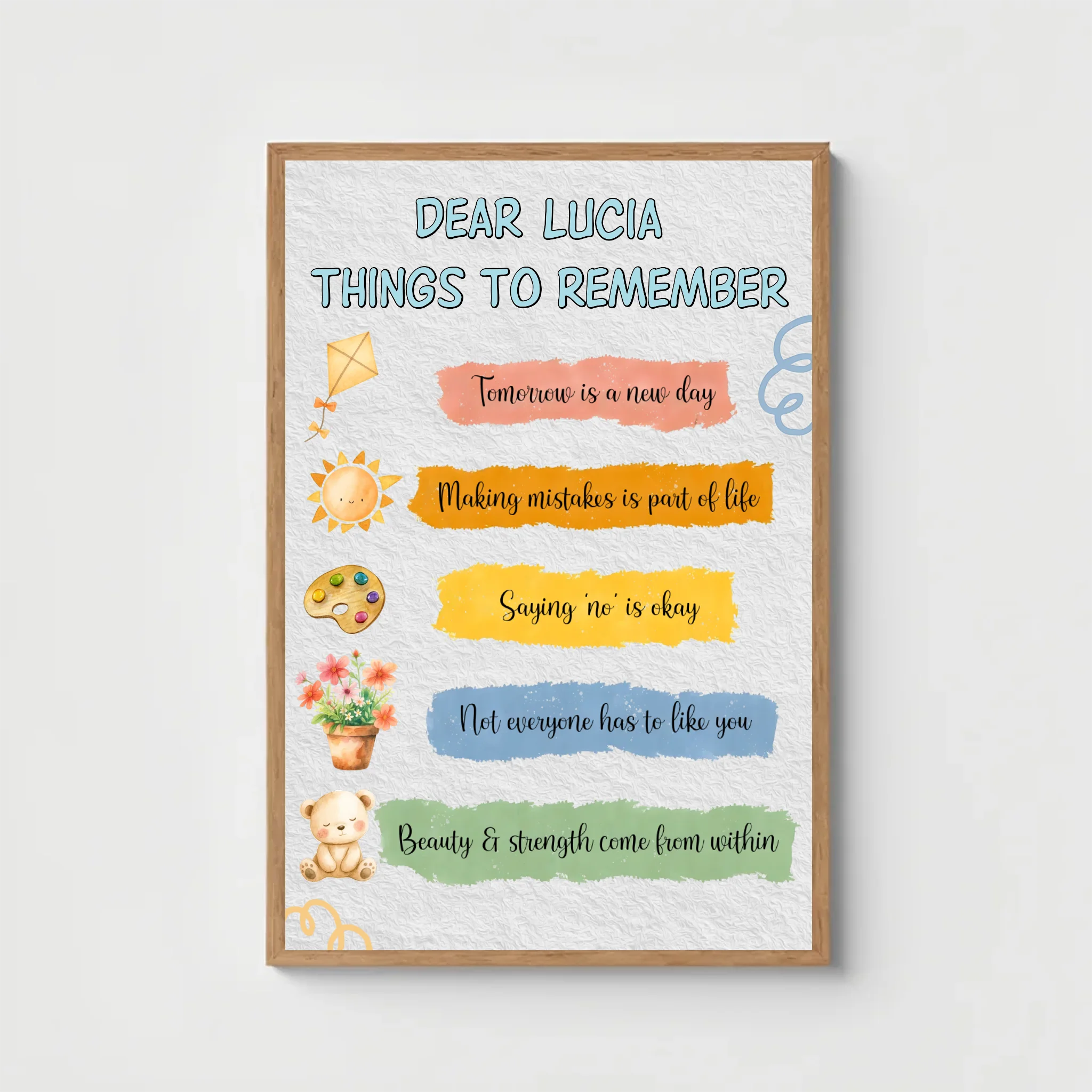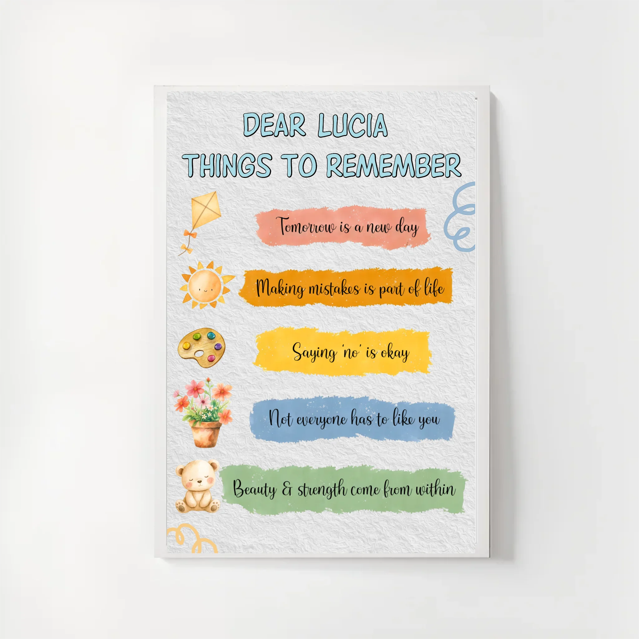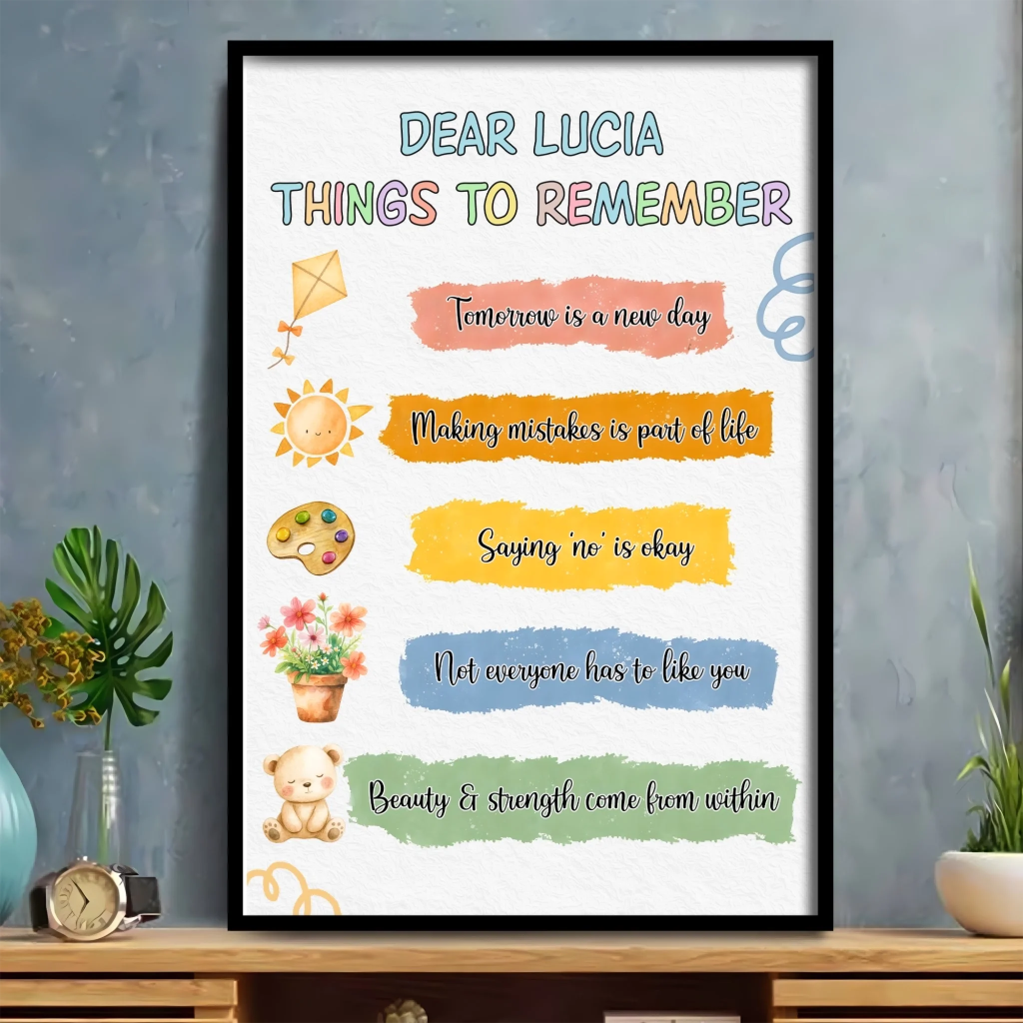 Turn your walls into a source of inspiration with our Personalized Standard Poster. Featuring uplifting quotes and your chosen custom name, this artwork is more than décor — it’s a daily reminder of positivity and strength. Perfect for a bedroom, living room, study corner, or even a cozy office, this poster adds warmth and personality to any space.