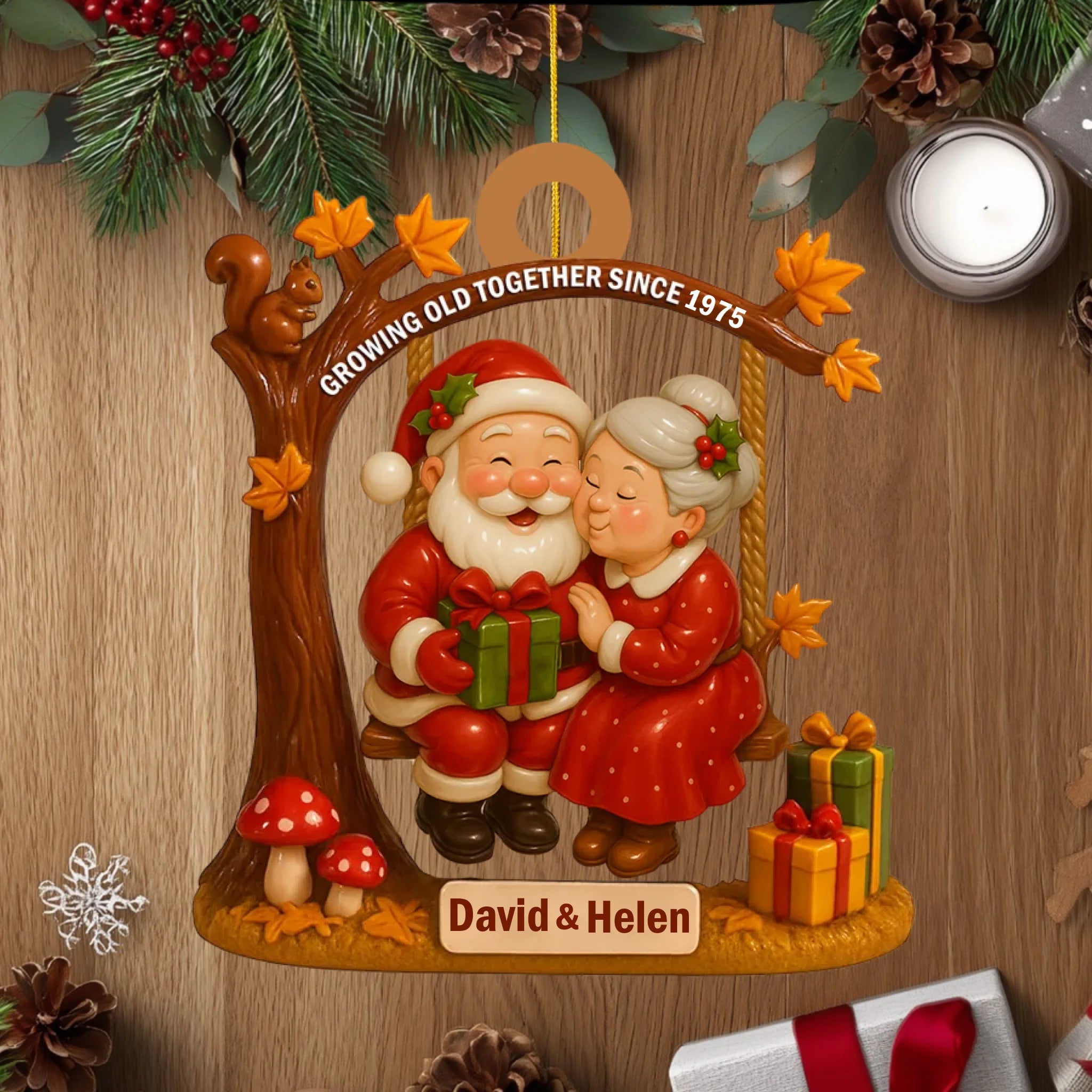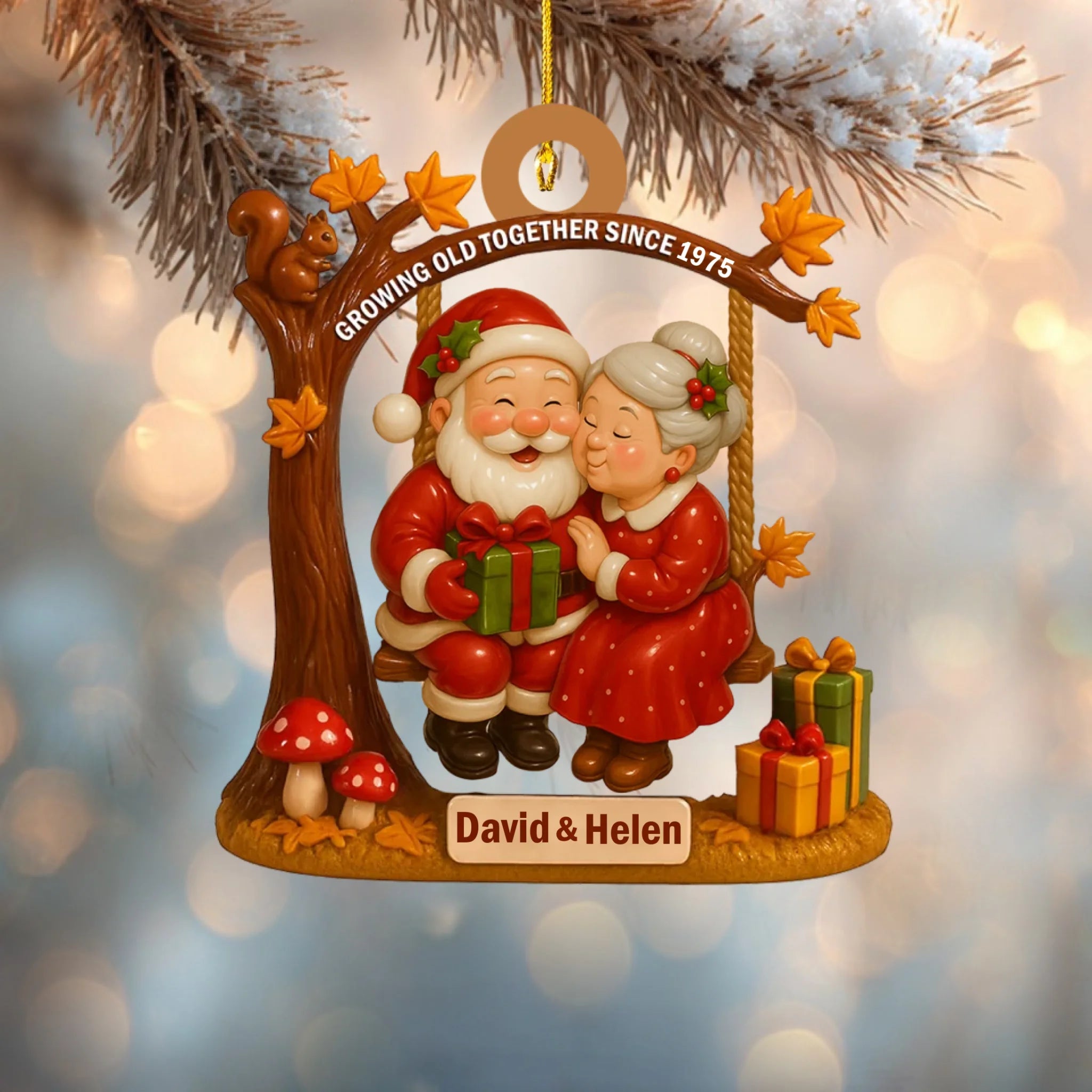 Personalized Santa Couple Wooden Ornament – Custom Names & Year, Christmas Gift Keepsake