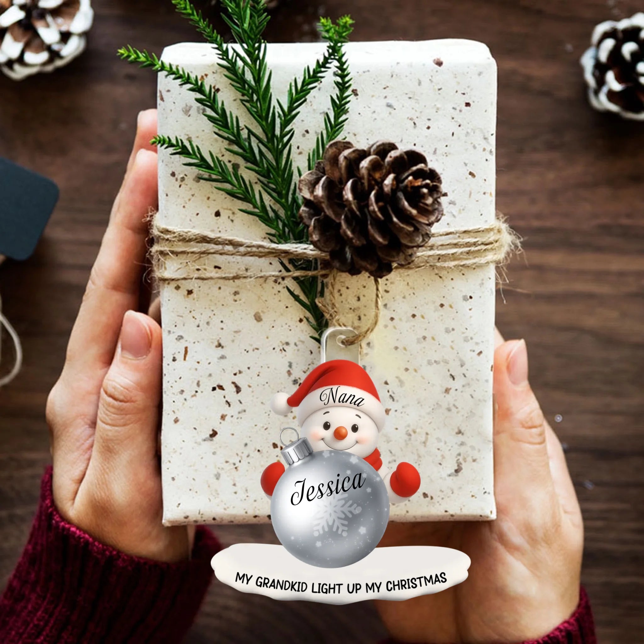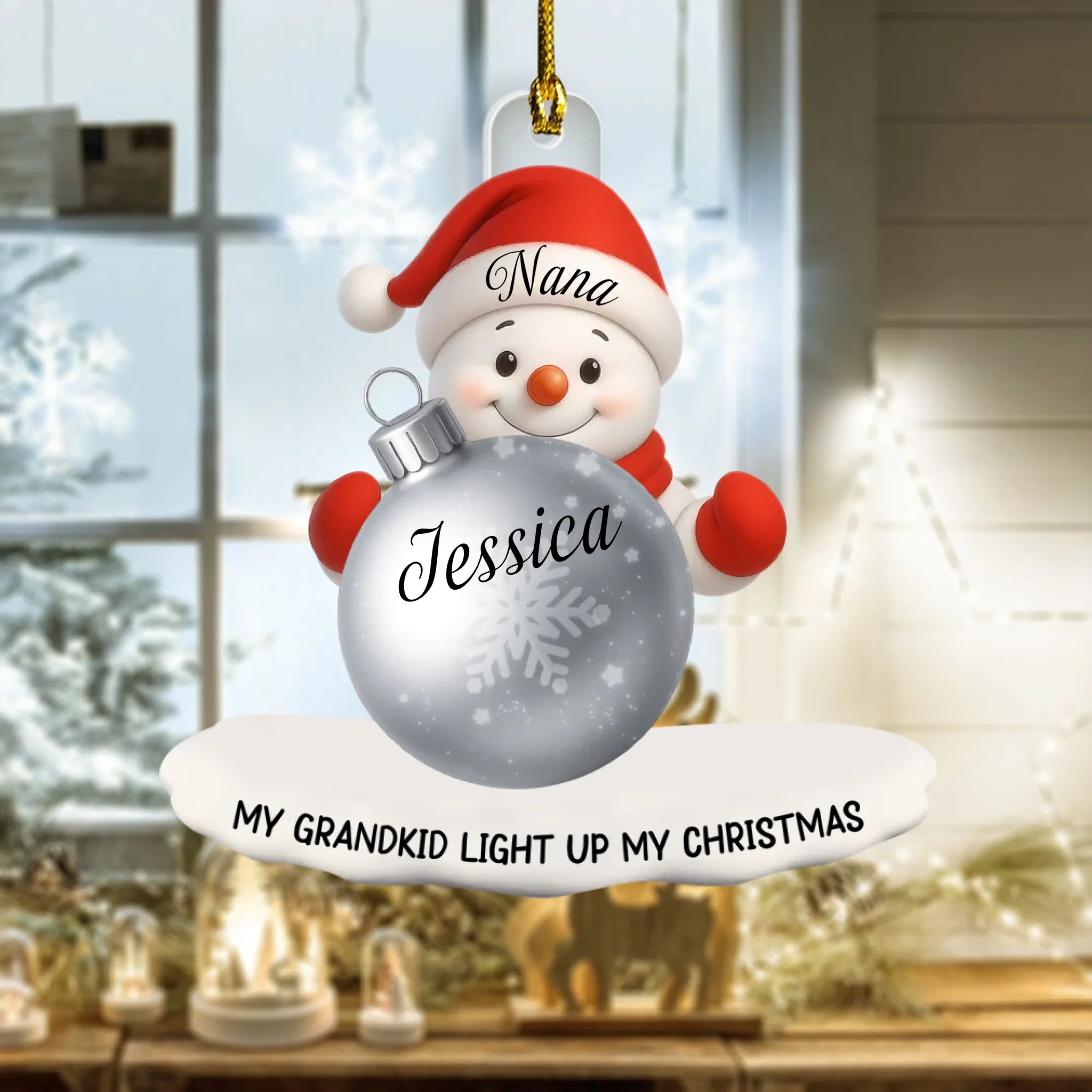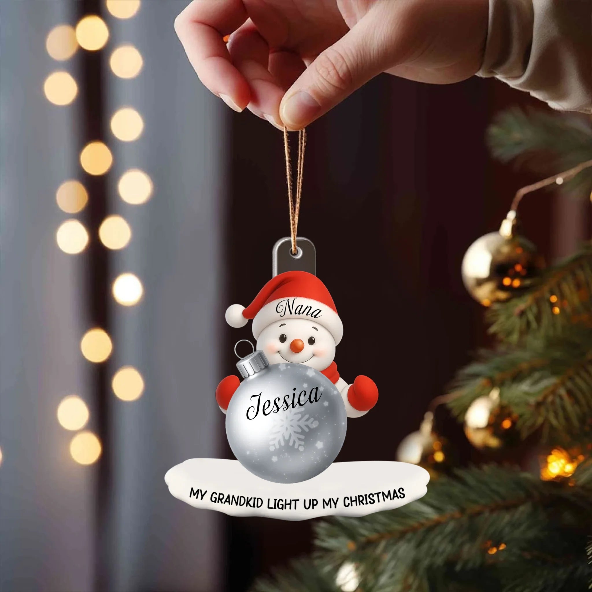 Personalized Snowman Grandma Ornament – Custom Name Christmas Ornament for Nana, Mom, or Grandma | “My Grandkid Lights Up My Christmas” Acrylic Gift