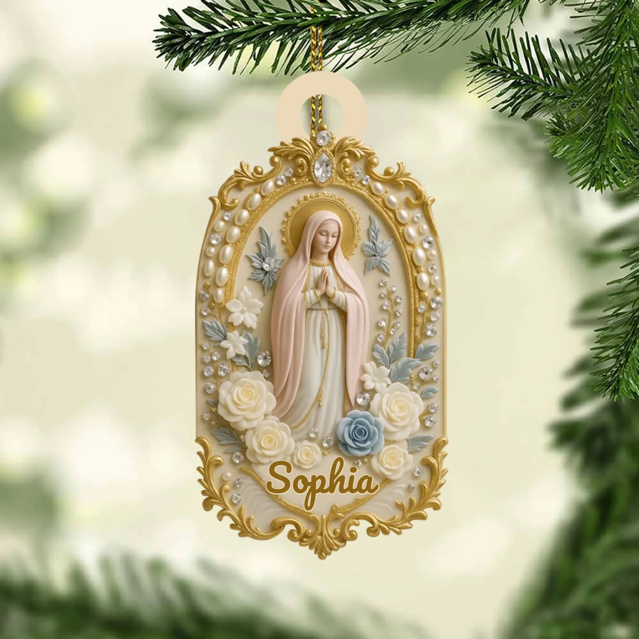 Personalized Virgin Mary Wooden Ornament – Custom Religious Keepsake, Blessed Mother Gift for Christmas or Everyday Faith Décor