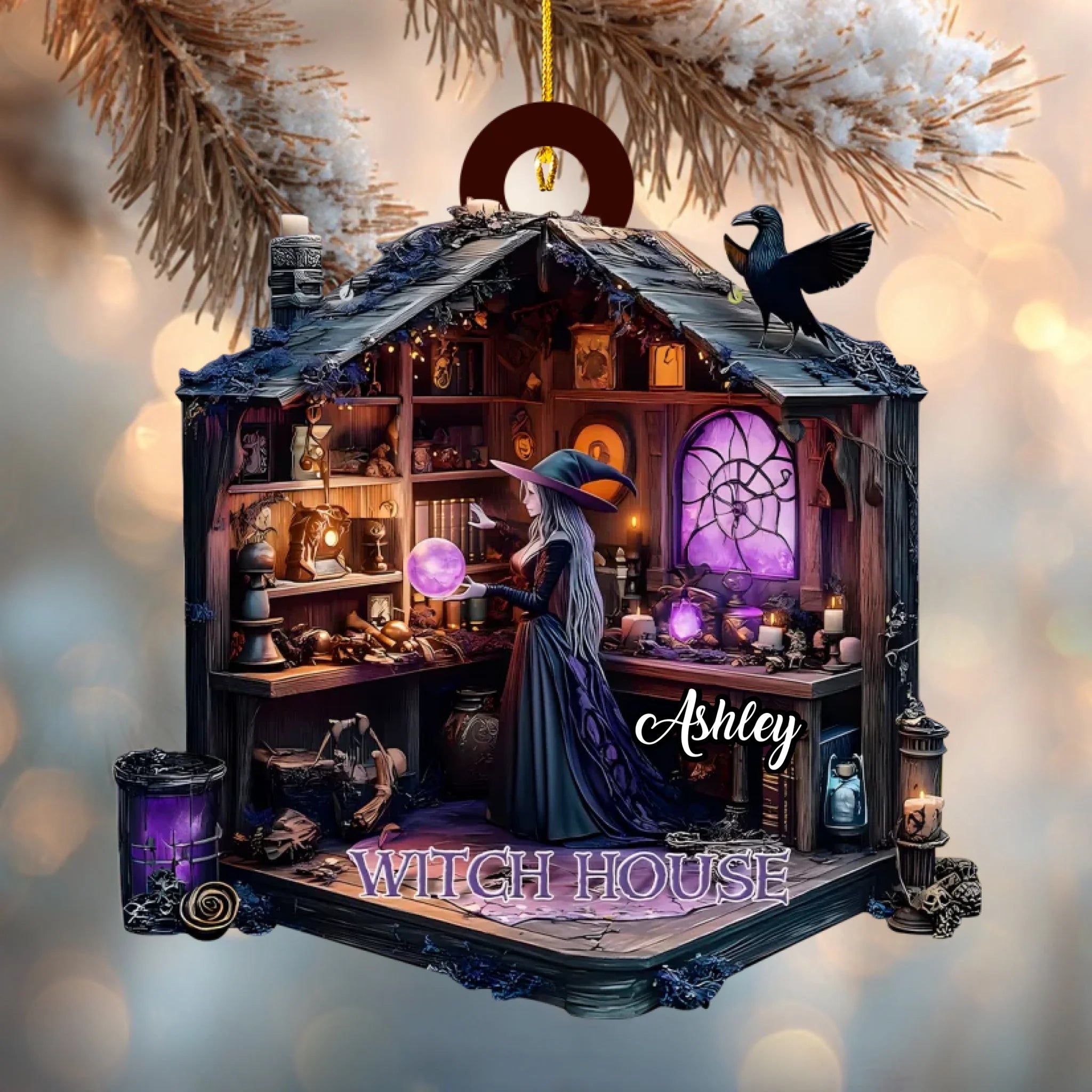 Personalized Witch House Wooden Ornament – Custom Name Halloween Decoration for Magic Lovers and Witches